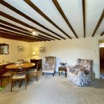 Maximum. With chimneybreast and now blocked fireplace with raised pamment hearth. French windows not only provide natural light from the southerly aspect but access out onto the sheltered patio. Exposed ceiling timbers. A traditional panelled door leads through to the Kitchen with a step down. Good ceiling height of 6'8 (2.04m).
