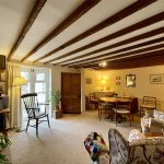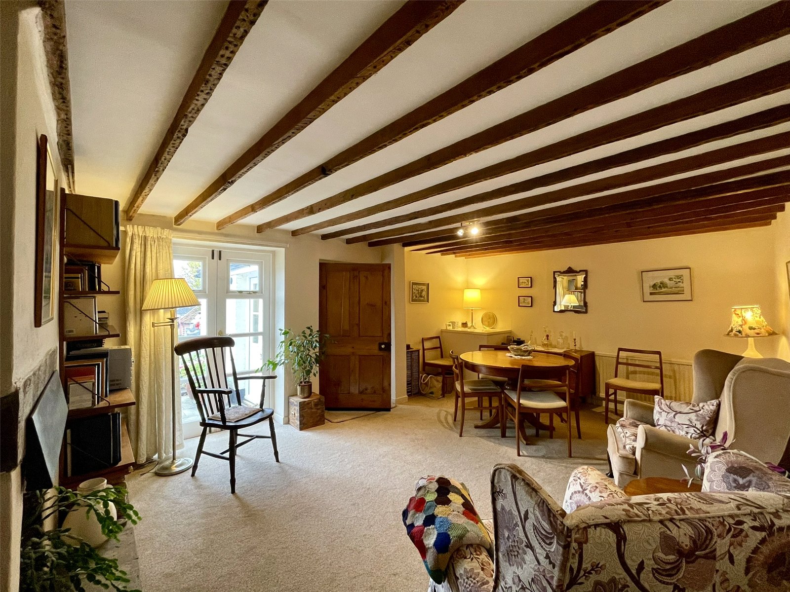 Maximum. With chimneybreast and now blocked fireplace with raised pamment hearth. French windows not only provide natural light from the southerly aspect but access out onto the sheltered patio. Exposed ceiling timbers. A traditional panelled door leads through to the Kitchen with a step down. Good ceiling height of 6'8 (2.04m).