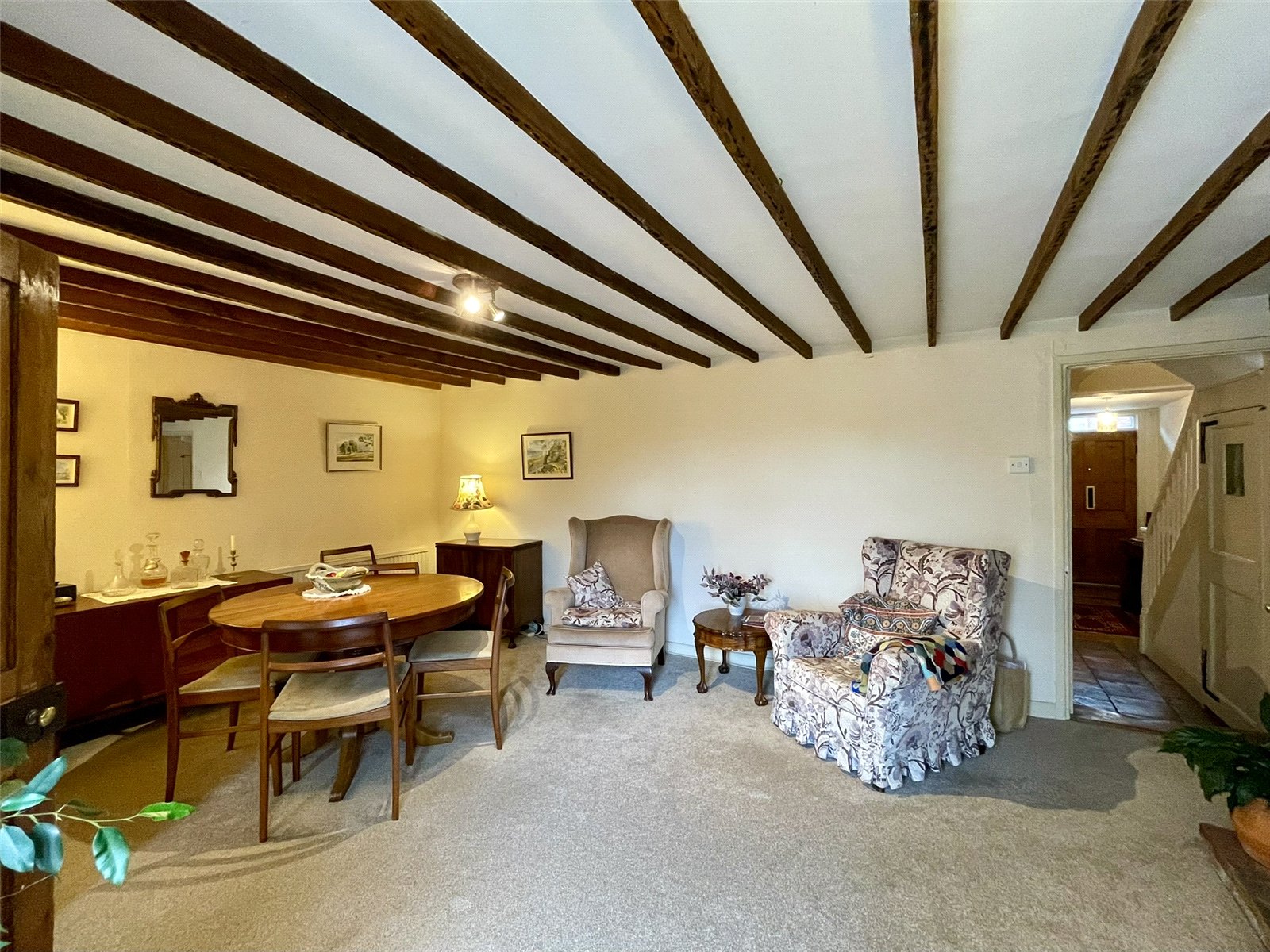 36 Castle Street is the central section of three properties evolved from the early 17th Century timber frame evident within each. This central section is unique however having an impressive hallway laid with pamment tiles and Georgian design influences to the staircase rising to the first floor. Furthermore, the layout comprises not only two distinct reception rooms but also a kitchen beyond, a cellar below and a useable attic space at the very top, accessed via an early flight of stairs. The property is also fortunate in having the central section of three parts to a period outbuilding which provides this house with a garage space and room for workshop activities. The current owners have enjoyed their time in this lovely house since 1984. Improvements, repairs and renovations have been carried out along the way including the installation of gas fired radiator heating.