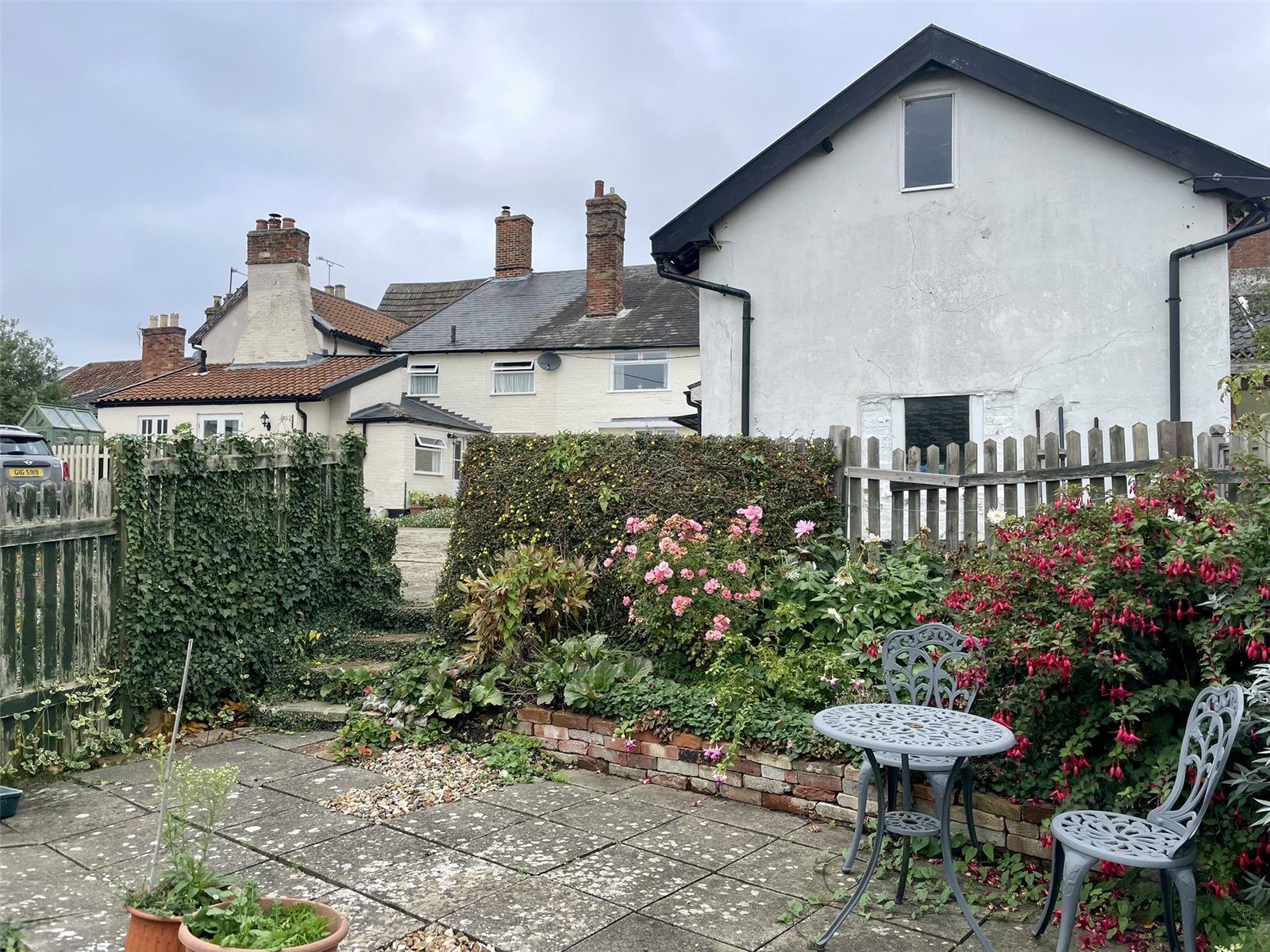 The accessway from the road, for pedestrian and vehicular access serves 34,36, 38 & 40 (Regency House). 34, 38 and Regency House have all been sold by Harrison Edge in the past fifteen years, the point being these are now Registered and the shared nature of the access and 'yard' area, clearly established. No 36 is fortunate in owning part of the small Barn, set to one side of the Yard and now providing garaging and workshop space. No.38 Castle Street owns either side. With an up and over door, the internal space measures approximately 13'1 x 12'4 (4m x 3.78m) plus the tiled 'outshut' to the front which at some point in the past was extended to allow a car to be parked within. The garden to No.36 sits, as with the neighbours, across the Yard and is the central section with greenhouse. In the lee of the house is a patio area for sitting out.