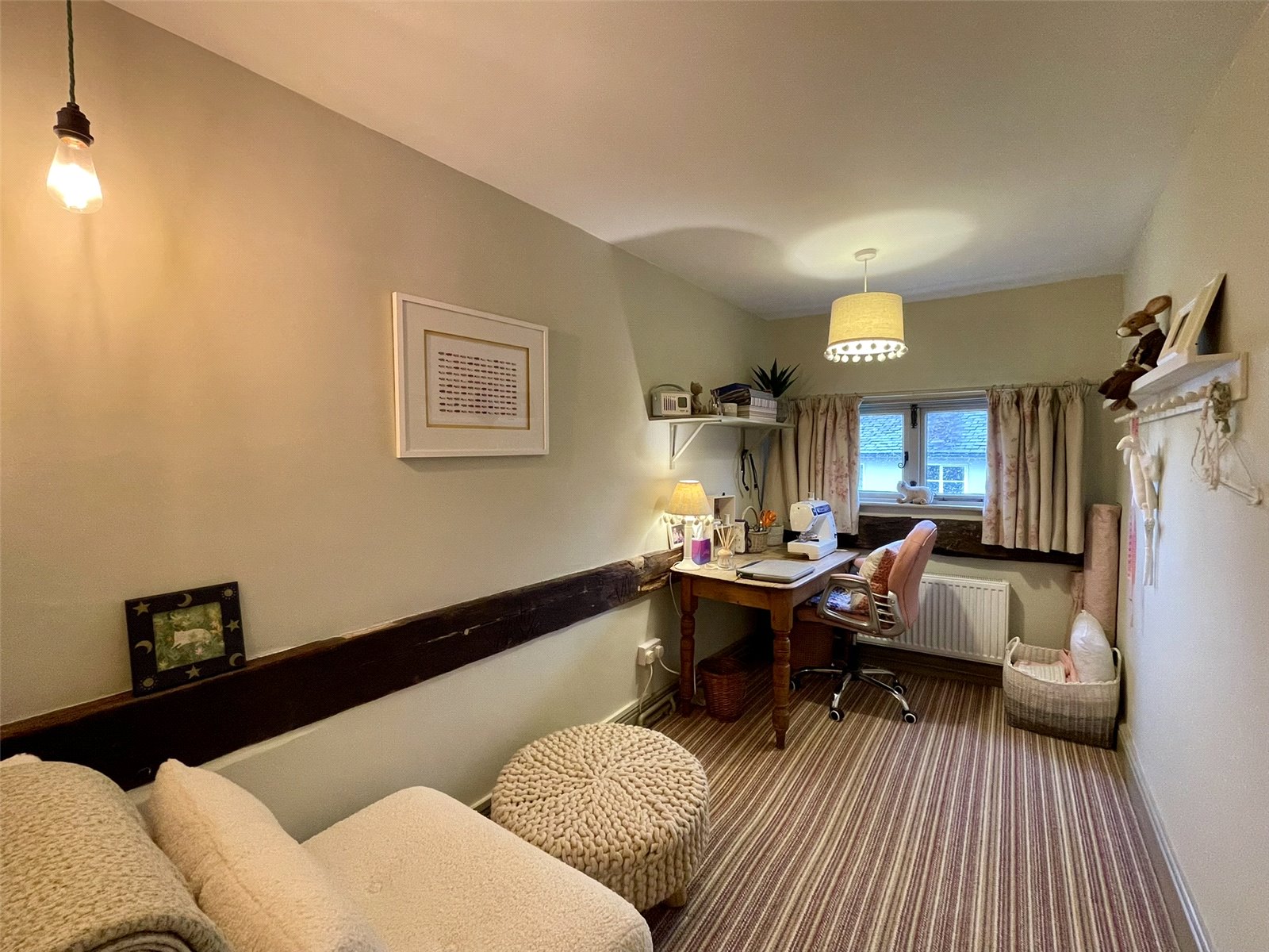 Featuring a matching 4-pane window to the front elevation. Exposed timber wall plate. Built-in cupboard set behind a period door. Headroom roofspace viewing point. Double radiator with thermostatic valve.