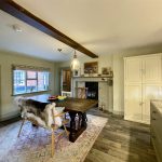 A lovely room with plastered chimneybreast and fireplace with flagstone hearth and flat-topped wood burning stove. A 6-pane Georgian style window provides an outlook to the front and takes natural light from the southerly aspect. A cast style radiator sits beneath. Of particular note is a superior Georgian corner cabinet with external ornamentation, scalloped shelves and glazed upper section. As will be seen throughout the house, period internal doors have been retained where possible complete with refurbished period rim locks. Stairs, tucked to one corner rise to the first floor with beneath a recess leading to an understairs cupboard. Doors lead to the front entrance lobby and 'The Long Room' at the rear creating a circular movement around the ground floor.