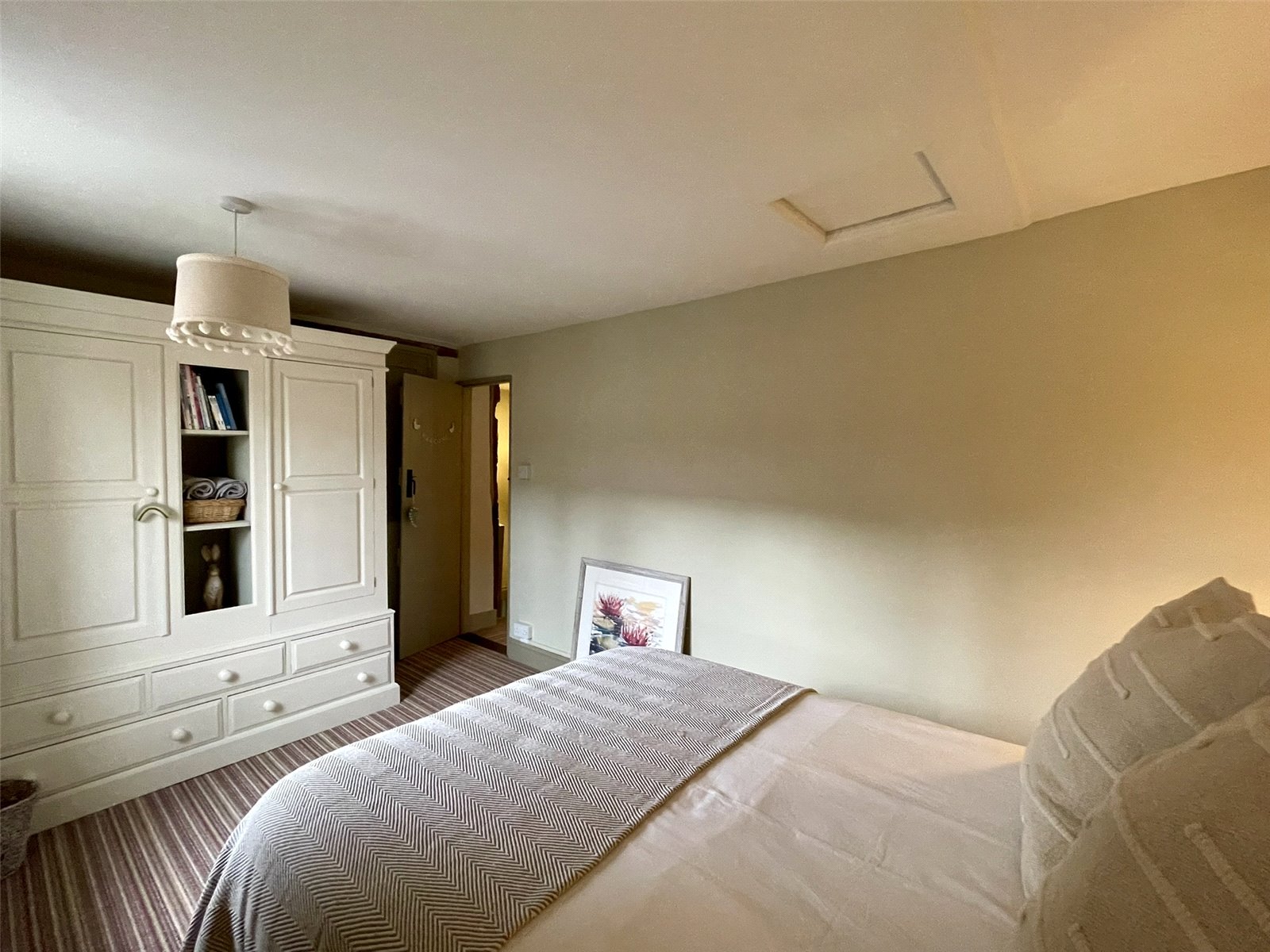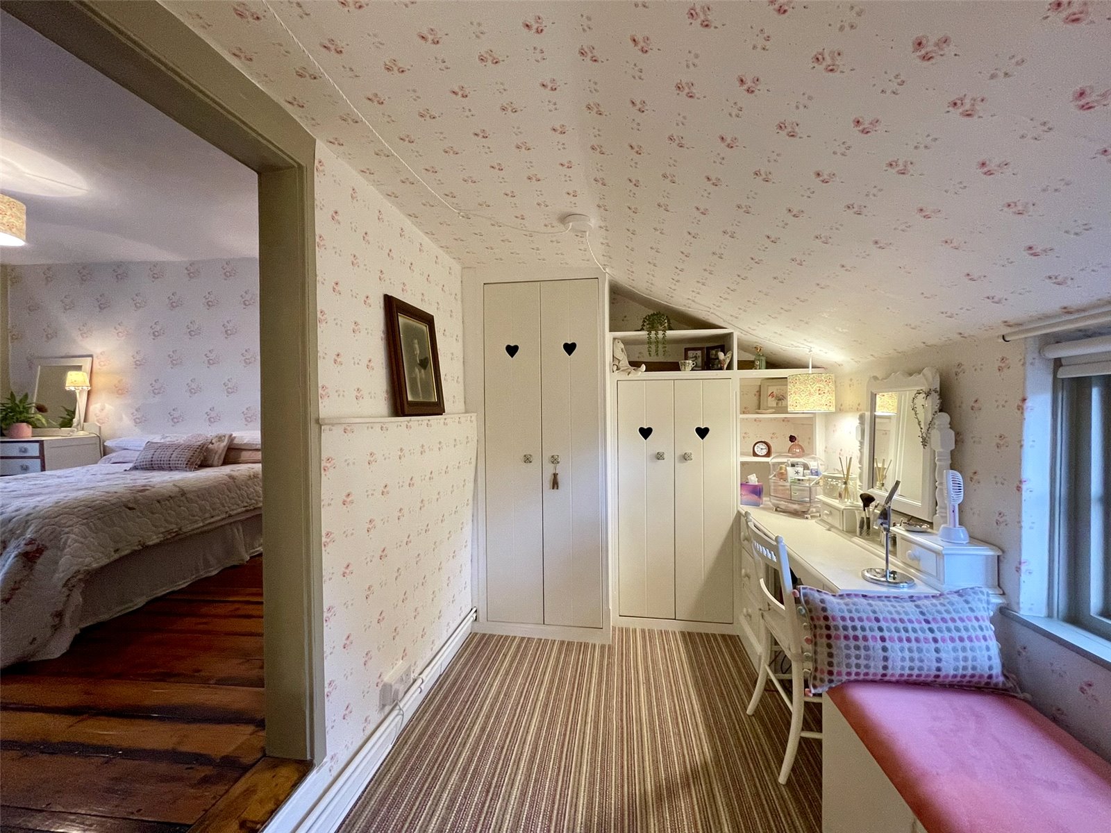 Featuring a matching 4-pane window to the front elevation. Exposed timber wall plate. Built-in cupboard set behind a period door. Headroom roofspace viewing point. Double radiator with thermostatic valve.