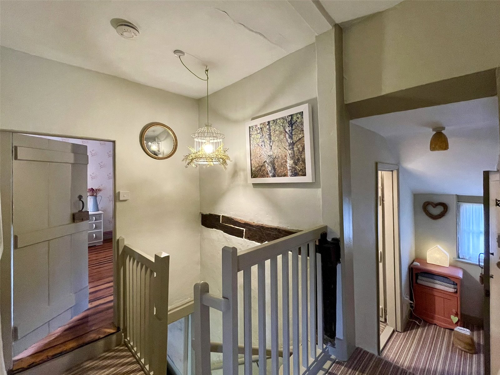 Stairs having risen from the Sitting Room to the central landing serve each of the five first floor spaces.