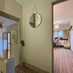 With outer panelled entrance door and connecting both sitting room and kitchen dining room via doorways at either side. Herringbone pattern brick floor.