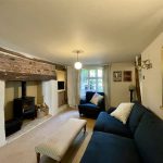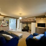 An inviting space featuring an inglenook fireplace complete with Charnwood wood burning stove set on a brick hearth along with a recess to one side. An attractive large window provides a view down the courtyard garden towards the barn at the rear. Double radiator with thermostatic radiator valve. A lobby to one corner leads through to the Dining Room and has a shelved built-in cupboard extending beneath the staircase. Ceiling height: 6'10 approximately.
