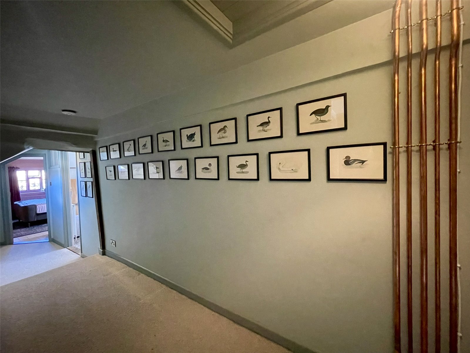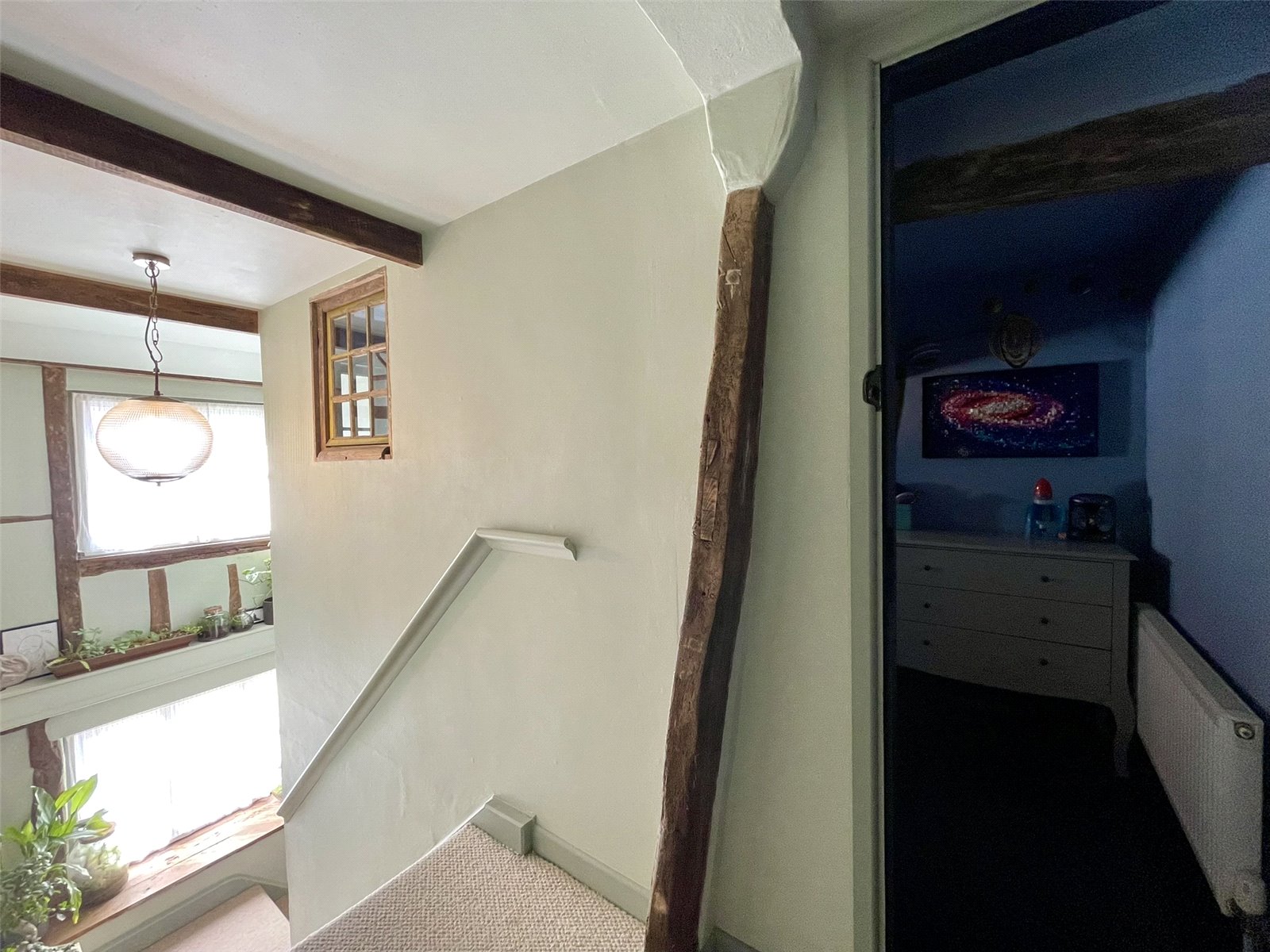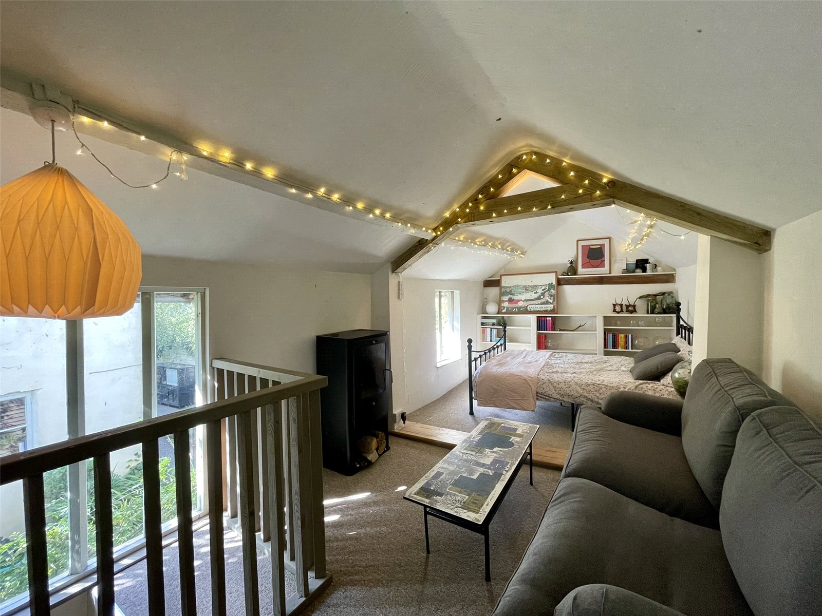 Two internal windows provide 'borrowed' light and add character. Approval has been granted for the insertion of one Heritage roof light along with a single window within the gable wall. Single radiator with thermostatic radiator valve. Exposed timbers. An area at the end of the room provides a workstation space ideal for homework!