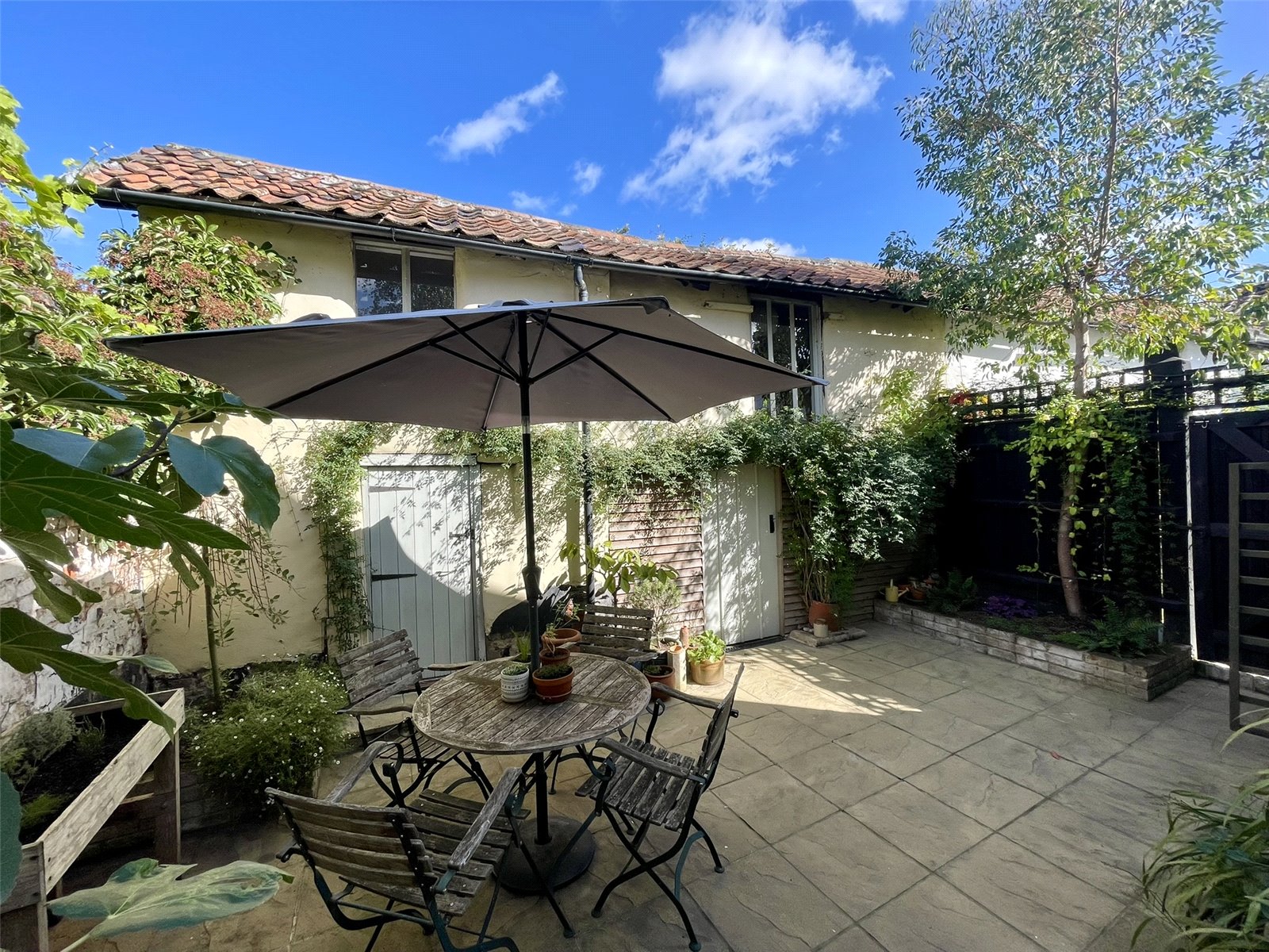 23 Church Street forms one end of a short terrace of red brick fronted cottages separated by a set of carriage gates through which all four properties have a pedestrian Right of Way to their respective rear access. As No. 23 is on the the end there is no need for others to access it, or to disturb its privacy. This particular cottage like Dr Who's expanding phone box has the many attributes of a larger property being two abutted buildings now forming the whole. Consequently, behind the front door one is greeted by a good size entrance area with wide tall stairwell before heading through to two very comfortable sized reception rooms. It is also worth noting that unlike the other cottages and houses along the street, this property does not have a reception room alongside the pavement. The clever creation of the hallway and stairs set the reception space back from the street and this creates a noticeable sense of peace and calm. As can be seen from the floorplan, the staggered layout allows the reception room window to provide a long view to the barn at the very rear. The dining room beyond links in with the kitchen. Upstairs, the long landing serves three bedrooms and bathroom. The delightful courtyard garden, walled along one side and bordered by the cottage and barn, is a lovely backdrop to the main accommodation. This versatile barn clearly a huge bonus provides workshop space, storage along with a converted first floor. A downstairs wc is the finishing touch. It has been an office, a children's safe sleepover space and currently a peaceful haven.