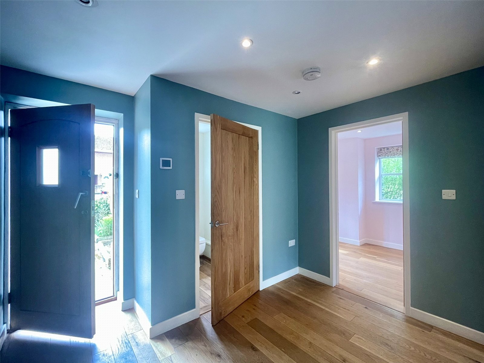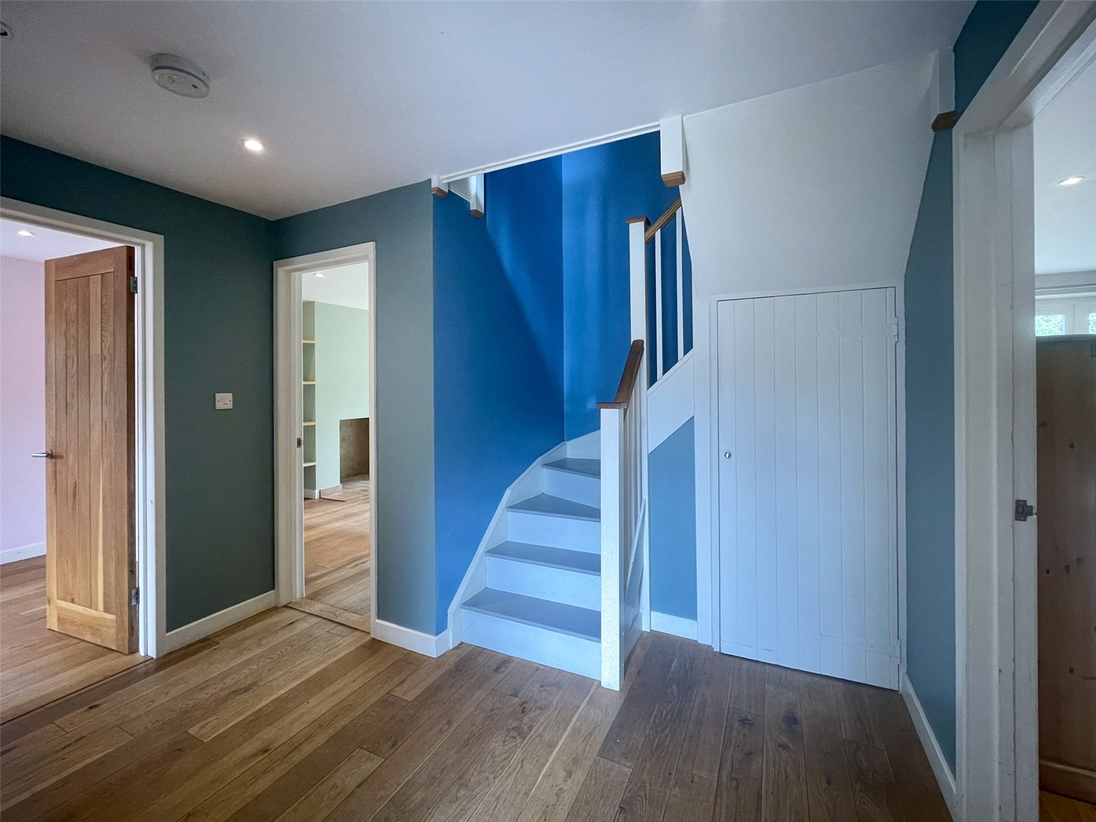 Approached from the outer canopy porch to enter a welcoming oak floored hallway in the centre of the ground floor spaces. Stairs lead up to the first floor and incorporate a cupboard below. Oak doors lead off.