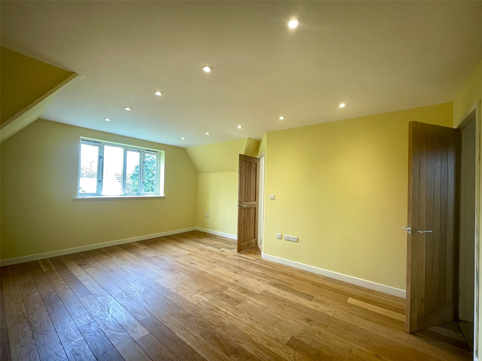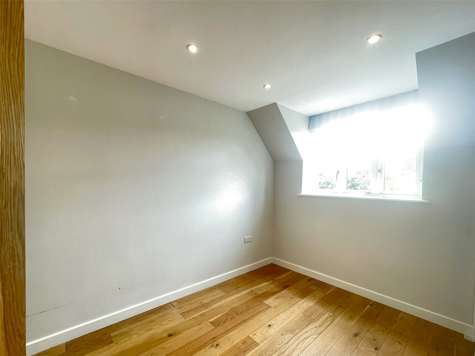 A lovely big oak floored room with 4-pane window to the rear overlooking the garden. Character from partly vaulted ceiling within the roofline. Television point.
