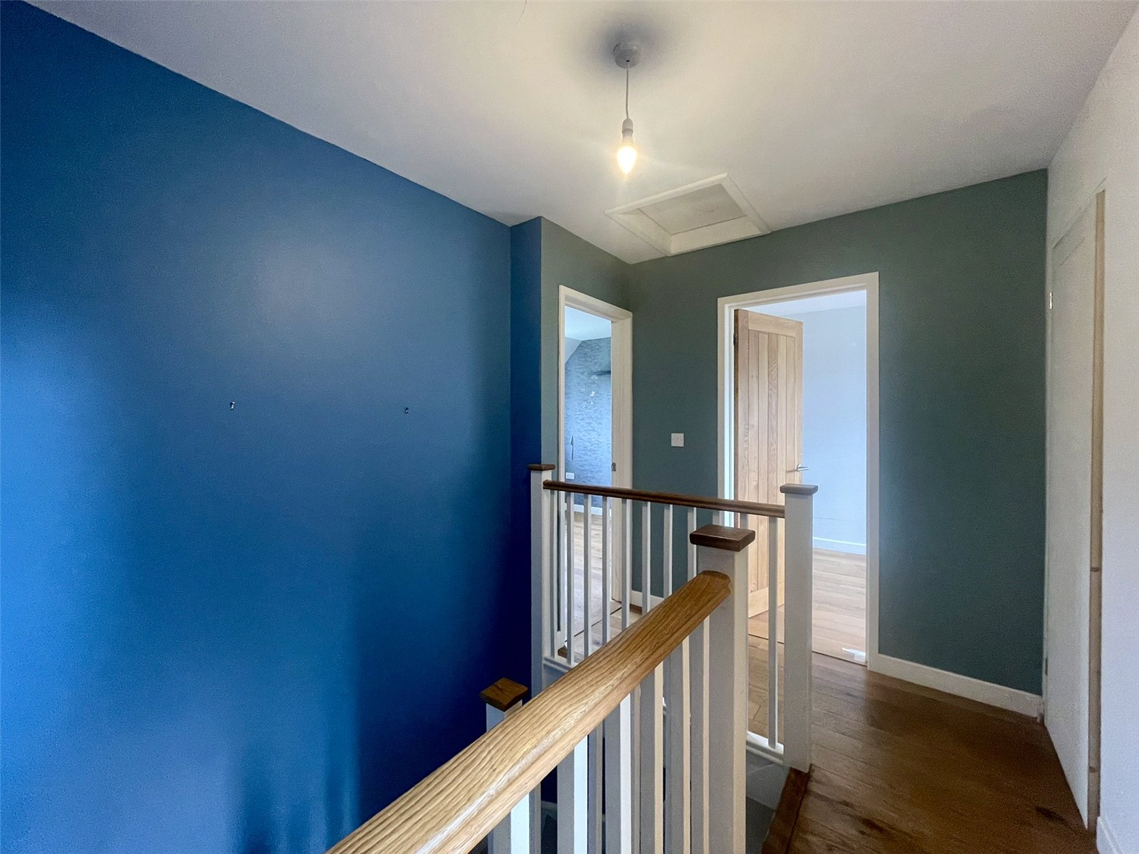With gallery balustrading and a continuation of the oak floor and door combination. Access to loft space. Built-in airing cupboard with hot water tank and immersion heater.