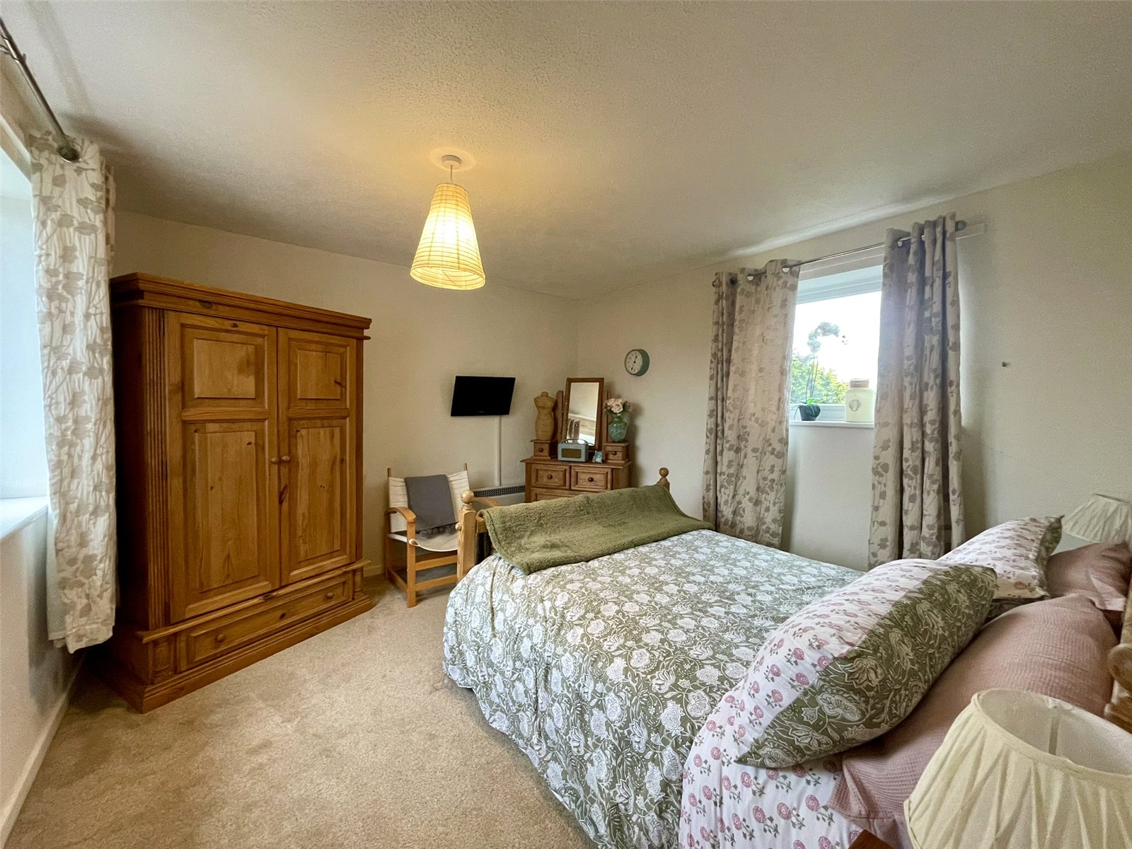 A double aspect room with windows either side. Electric panel heater. Dimmer switch.