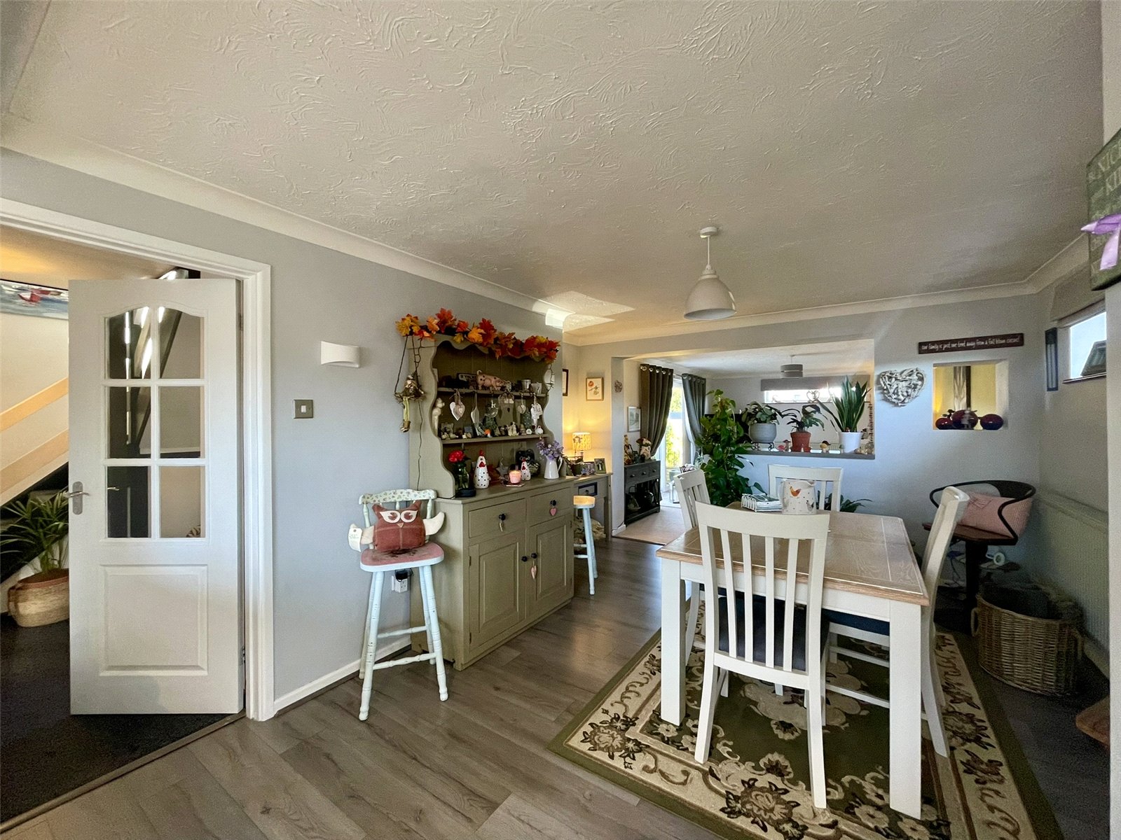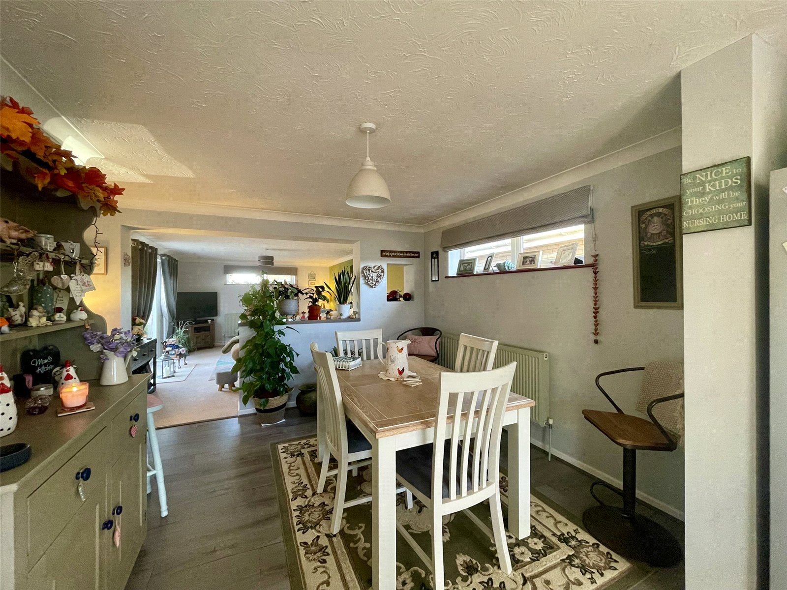 widening to 12'7 (3.85m) A social space set between both the Kitchen at the front of the property and the Lounge set to the rear. A high level wide PVCu double glazed window provides natural light. Double radiator.