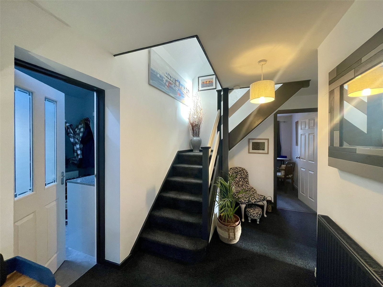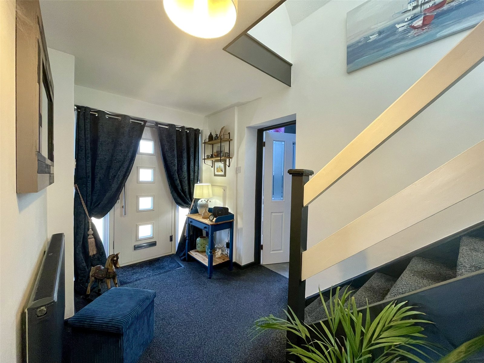 A welcoming entrance serving as a hub to the ground floor with stairs ahead to upstairs and doors off, left and right. A multi locking point outer door with glazed panes along with glazed side panels sets off the front of the house and provides decorative detail to the interior. Built-in Broom Cupboard. Understairs cupboard. Double radiator with thermostatic valve.