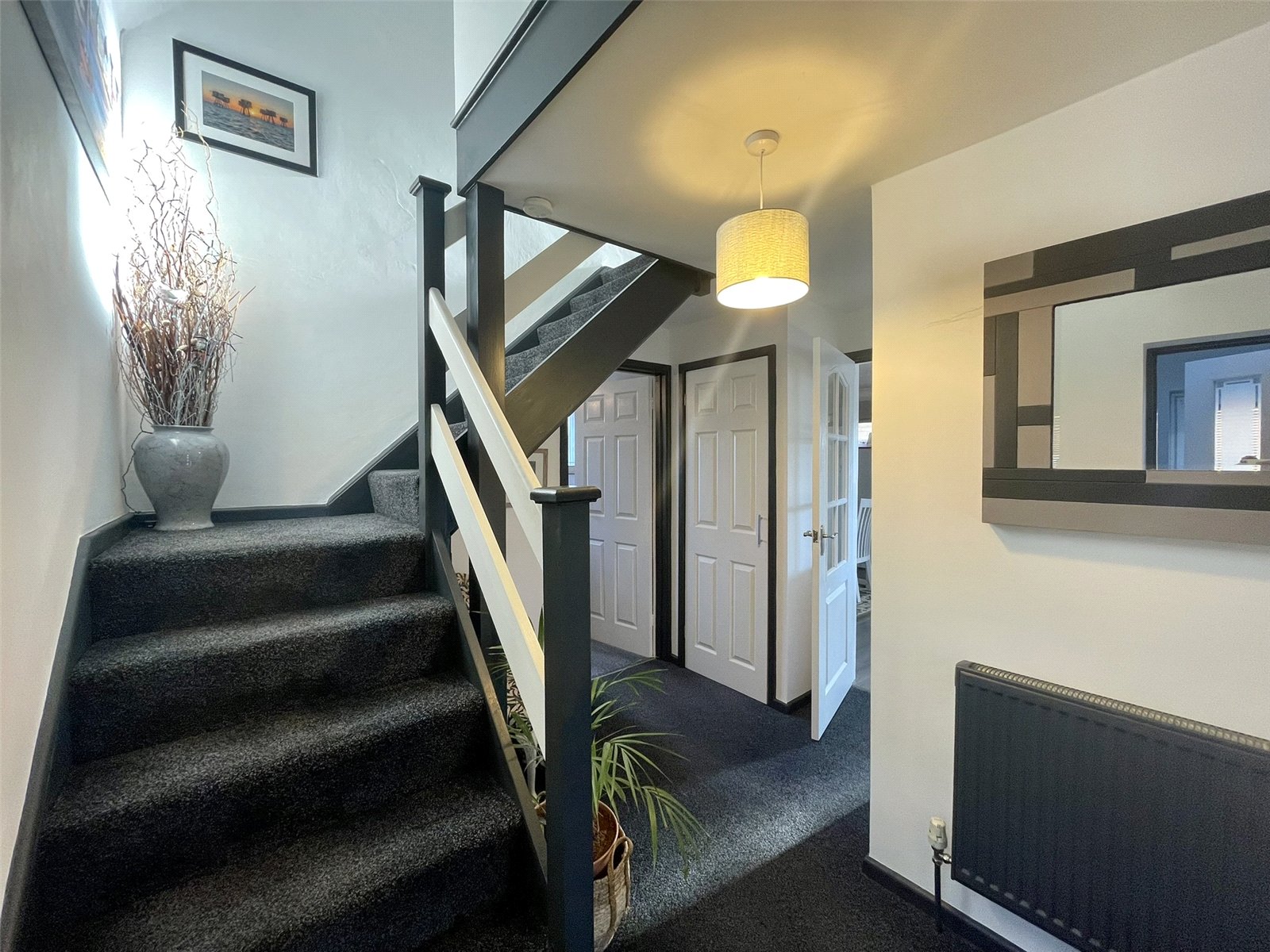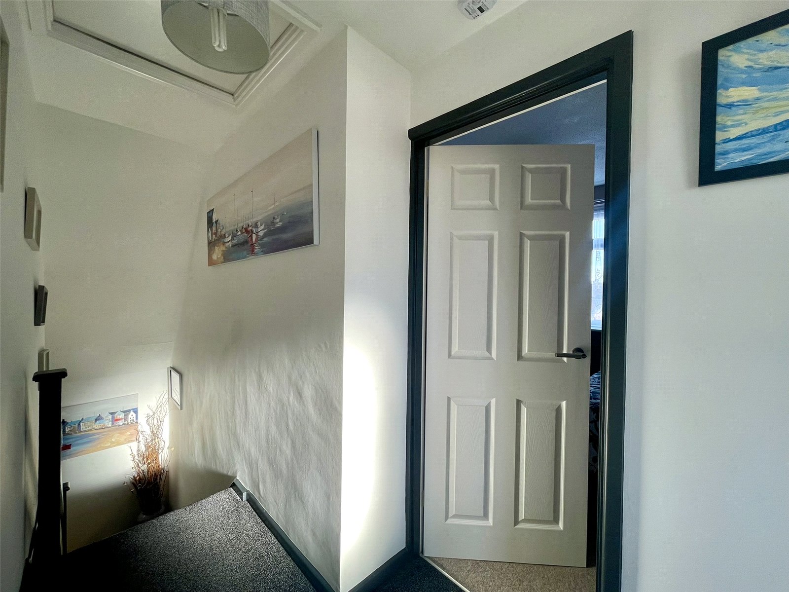 A central space serving as a hub to the first floor along with having access to the roof space above complete with drop down ladder and light within the roof. White panel doors lead off...