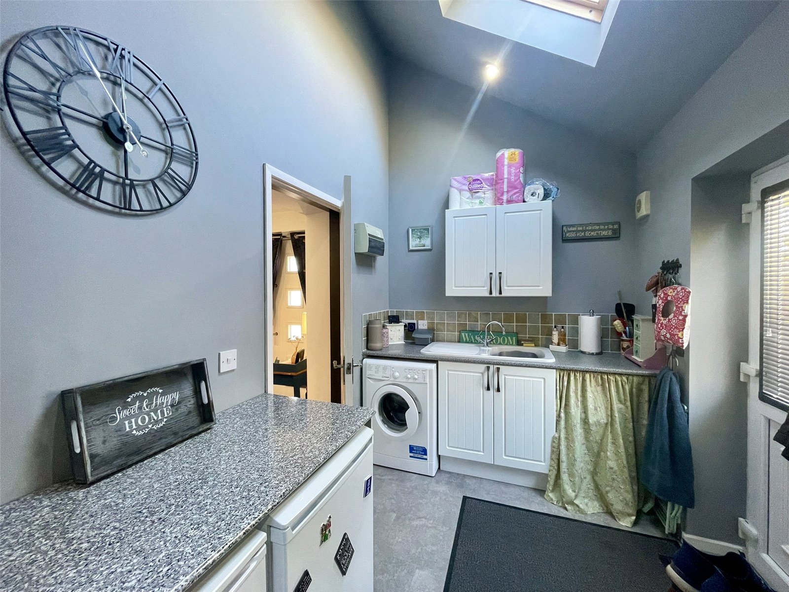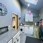 Created from the side extension and a real asset to the property. A half glazed outer door serves as a fourth means of entry/exit and ideal for those with a dog, dirty boots etc. Fitted with granite effect worktop there is useful surface space along with a ceramic single drainer sink with mixer tap with a cupboard beneath and two appliance spaces including plumbing for a washing machine. Wall cupboard. Single radiator. The tall mono-pitch adds great volume and contains a rooflight. A further door leads through to...
