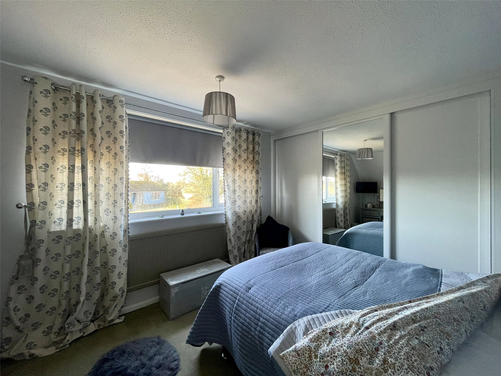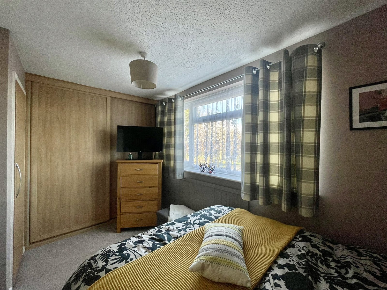 Measured to the wardrobes fitted across one wall providing floor to ceiling storage. Maximum width to back of wardrobes - 15'4/4.71m. Good size PVCu double glazed window to the front elevation. Single radiator.