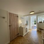 A good sized welcoming space laid with an Amtico woodblock type floor in herringbone pattern which has been used throughout the ground floor. Latch doors lead. Built-in Cloaks cupboard including hot water storage tank with immersion heater. Single radiator.