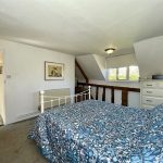 Stairs rise via a tall stairwell creating an atrium effect and featuring a tall panel glazed window to the gable end of the cottage. The hand rail and balustrading continues along part of the landing creating a gallery. Single radiator with thermostatic valve. Velux window. Latch doors lead off to....
