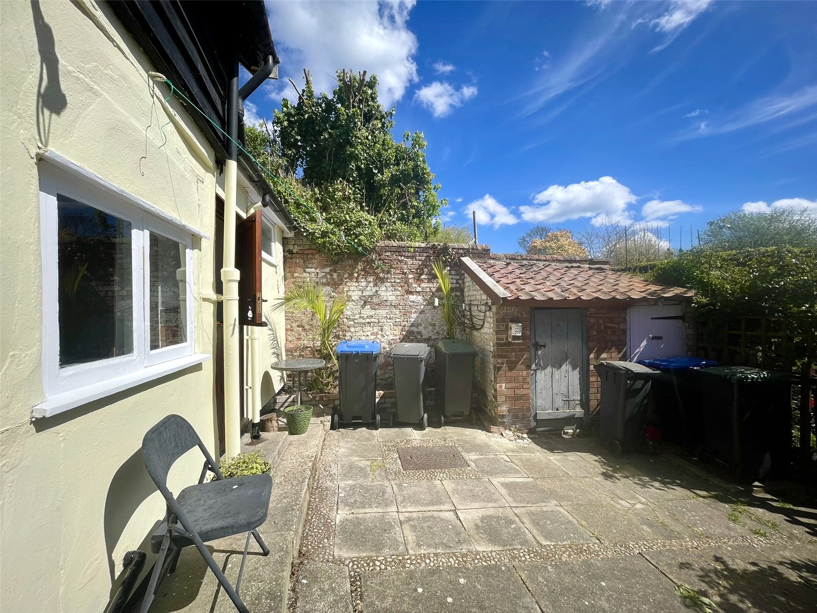 A Right of Way from the street, at the end of the terrace, leads across the neighbouring cottages to the courtyard of No.7. At the right time of day this is a veritable sun trap and an ideal spot for 'pot gardening'. A brick outhouse provides useful garden storage.
