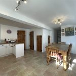 A light spacious kitchen with 6 pane stretch of windows across the rear plus stable type outer door and further glazing around the sink area which includes a single drainer sink unit with mixer tap. Fitted worktop and breakfast bar plus sink areas incorporate undercounter cupboard and drawers storage. An oil fired Stanley Range Cooker serves cooking needs and supplies domestic hot water and radiators throughout. Understairs shelved cupboard and non shelved cupboard. A latch door leads to the rear stairwell and stairs rising to the rear of the first floor.