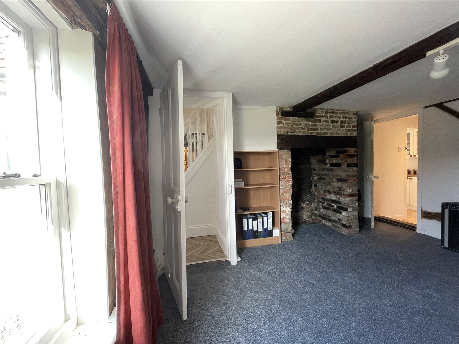 With double glazed sash type window to the front elevation. Exposed timbers. Doors connect with both the front entrance hall and kitchen lobby at the rear. Exposed red brick chimneybreast with fireplace along with built-in shelving.