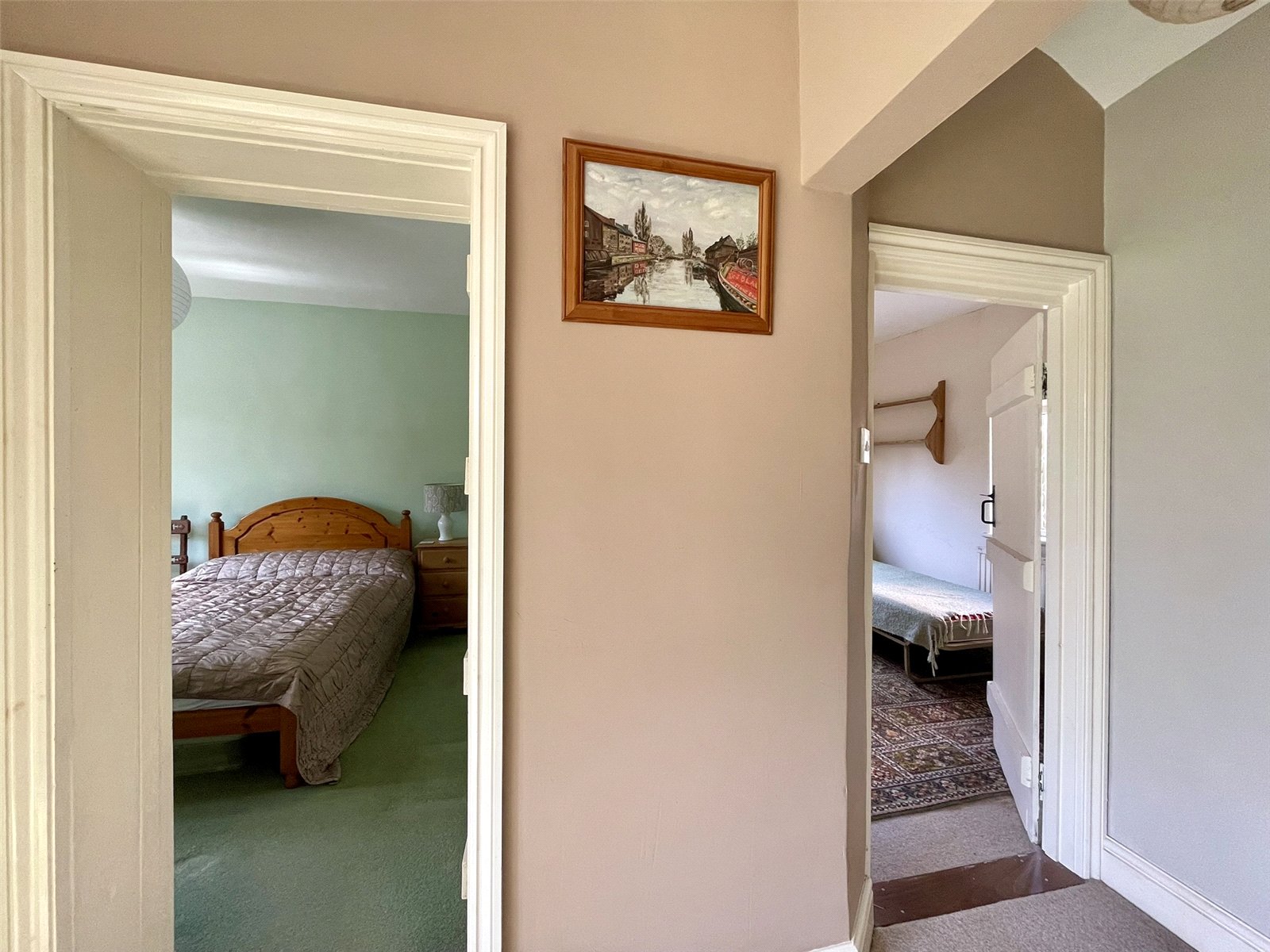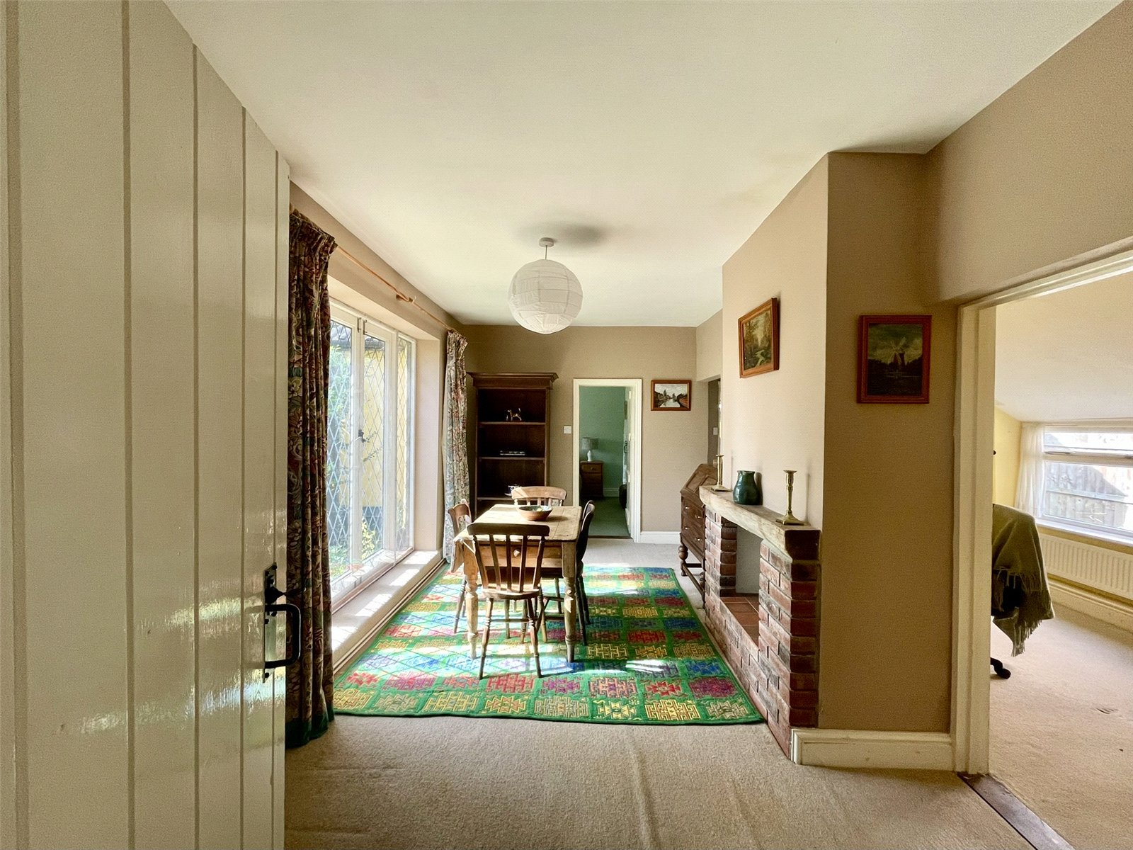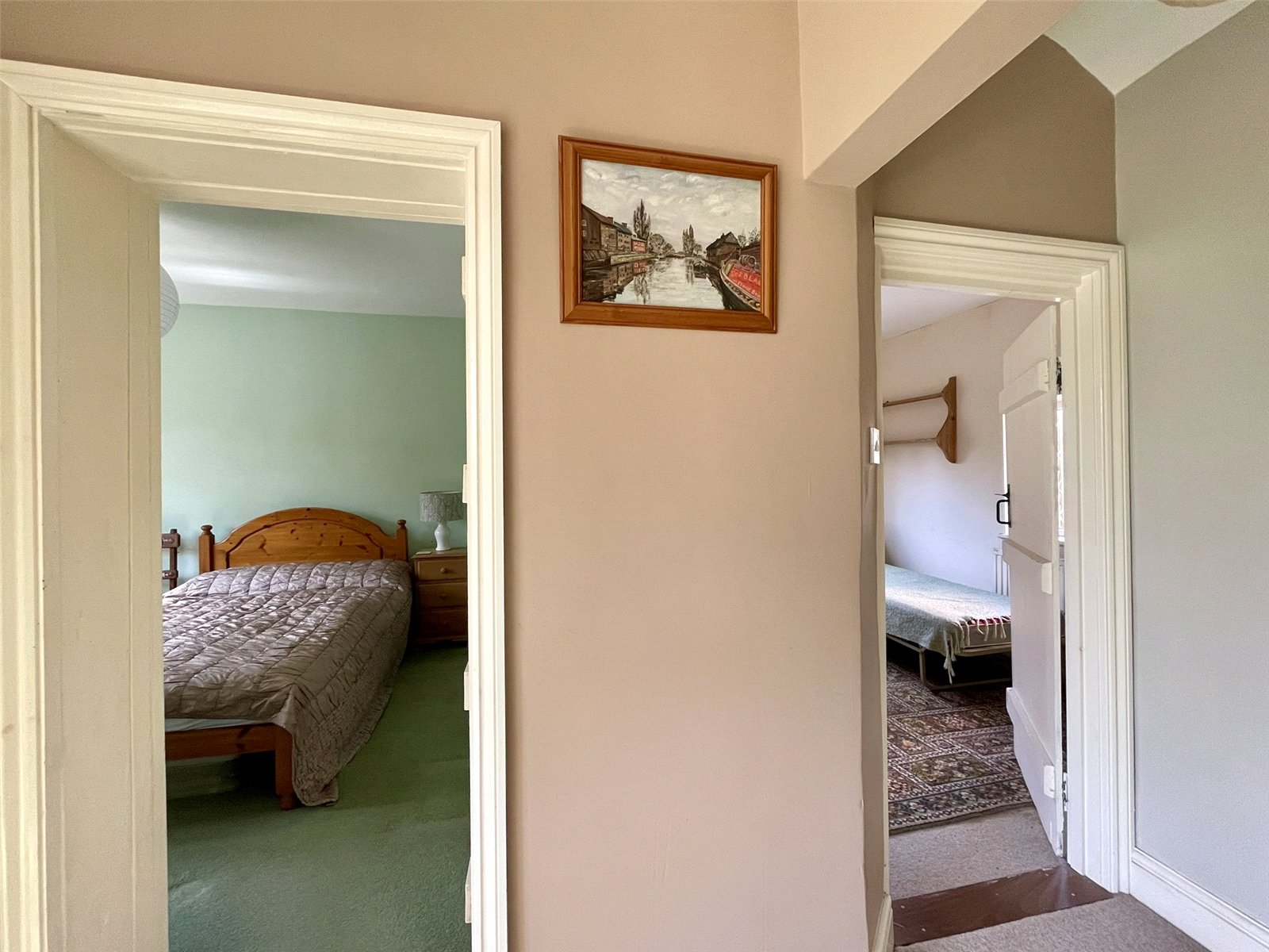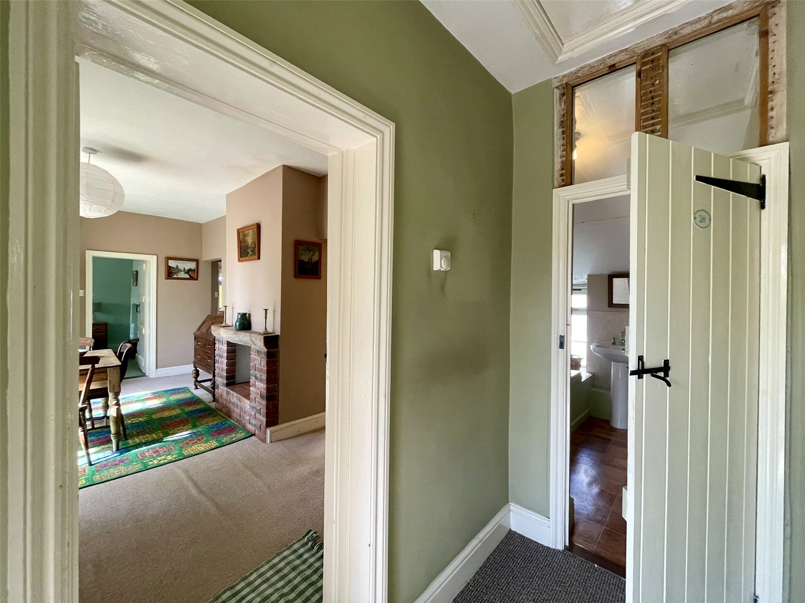 Being central to the interior, doors lead off to either side and each of two reception rooms, with the bathroom ahead. Access to loft space.