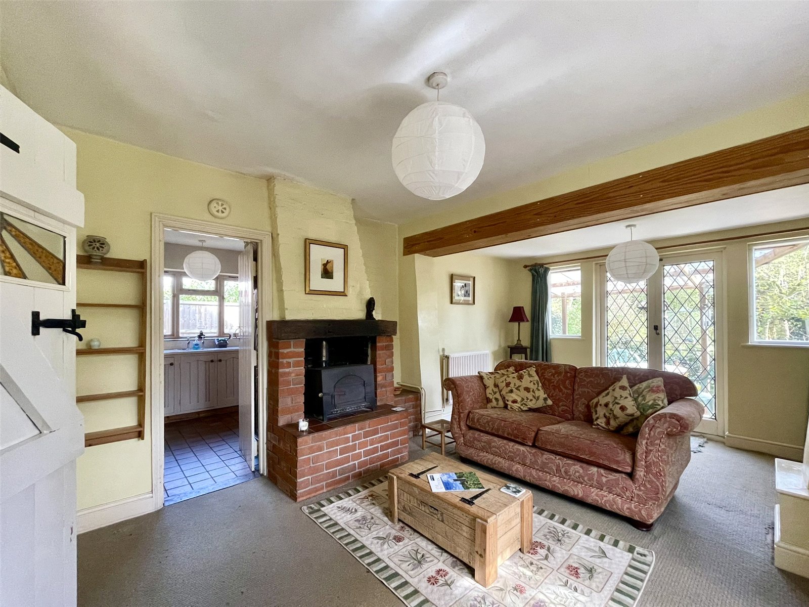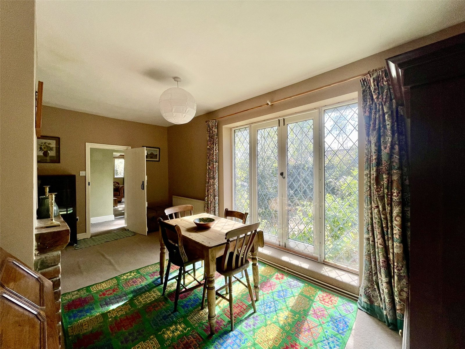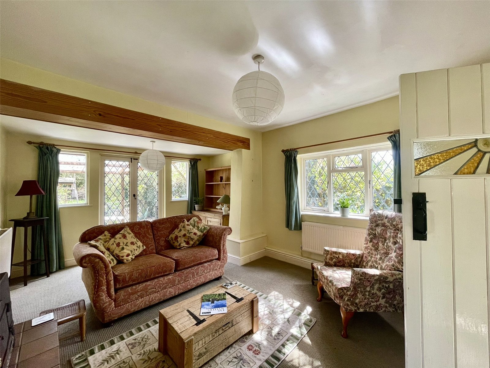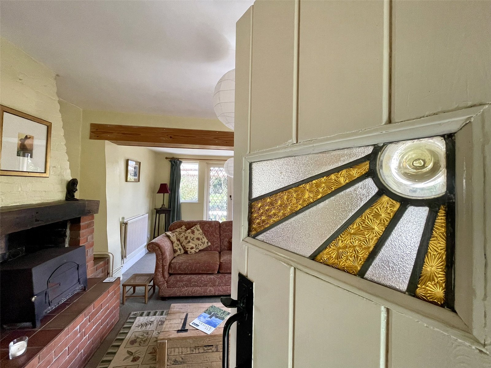 reducing to 11'11 (3.65m). Seemingly light and bright having glazed openings, each with 'leaded' detail, on both the easterly and southerly elevations. A chimneybreast with raised hearth accommodates a solid fuel burning stove. Two double radiators.