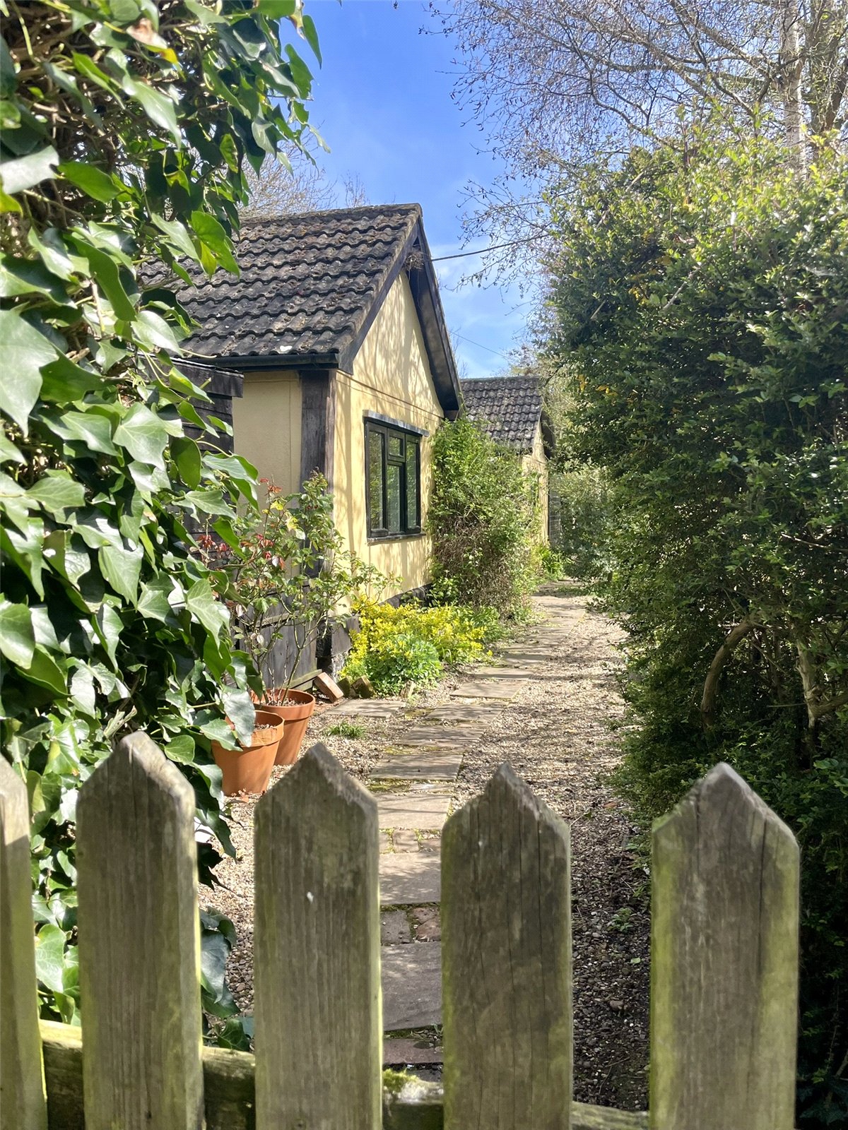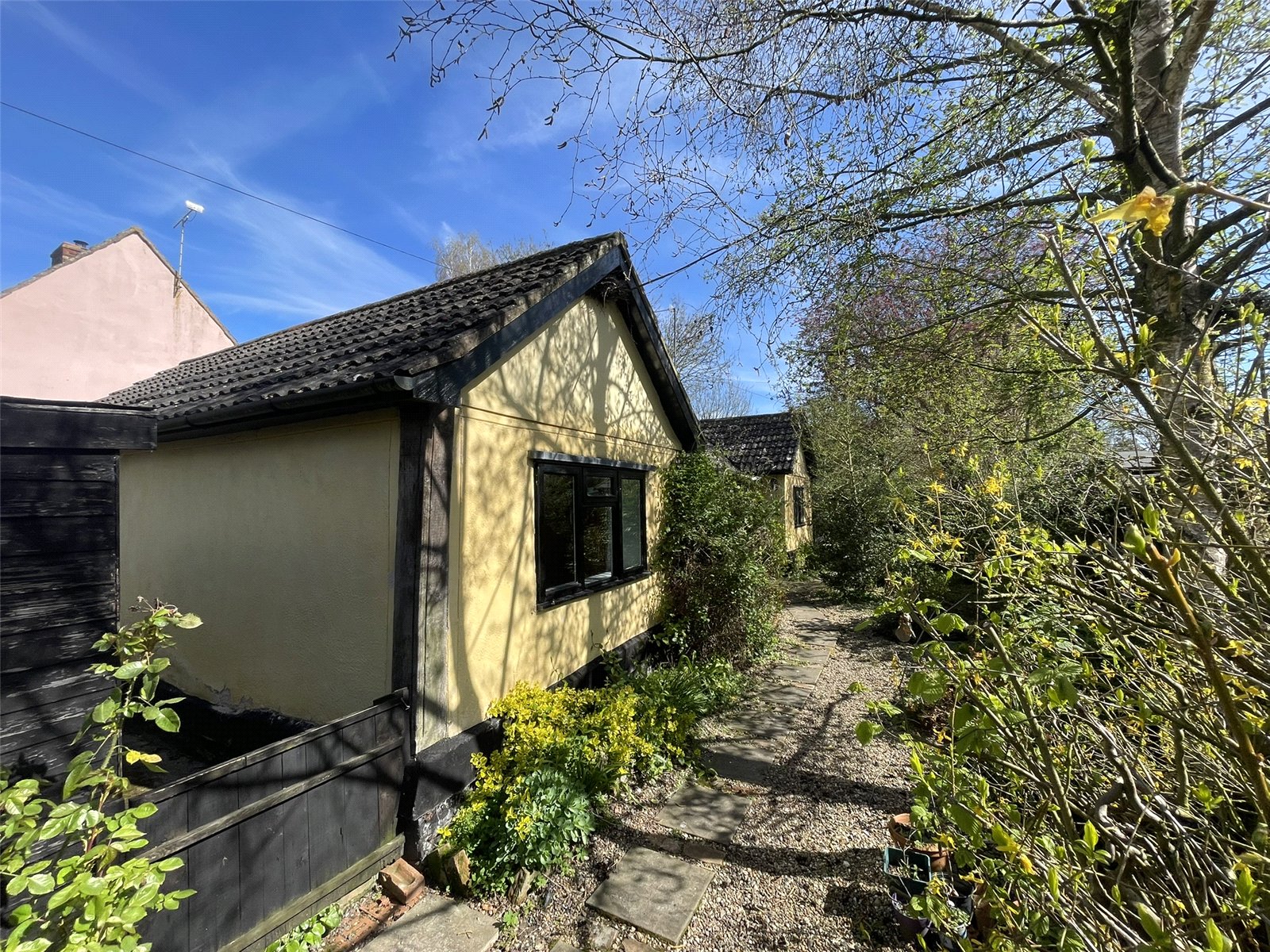Of further note is a timber frame open fronted building serving as a GARAGE and found further along the lane, past the cottages and registered on a separate Land Registry Title.
