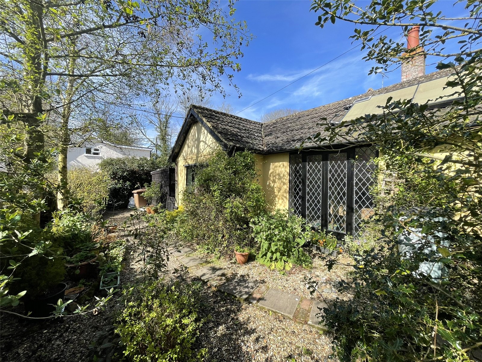 Honeysuckle Lodge is a coming together of two single storey 'lodge' buildings which suggest to me being Victorian in origin. Now being offered for sale as an END OF CHAIN property, this project but very liveable home is a rare opportunity last sold in 2001. The internal layout provides well balanced living space as can be seen from the floorplan. A central hallway has a reception room to either side and depending on lifestyle, one can have two or three bedrooms depending on whether a study or such like is required. The kitchen has a utility room leading off and a verandah arrangement has been added to the right hand end which lends itself well to the main reception room from where an outlook into the grounds can be enjoyed. Oil fired radiator heating is installed throughout and timber windows contain sealed unit glass.