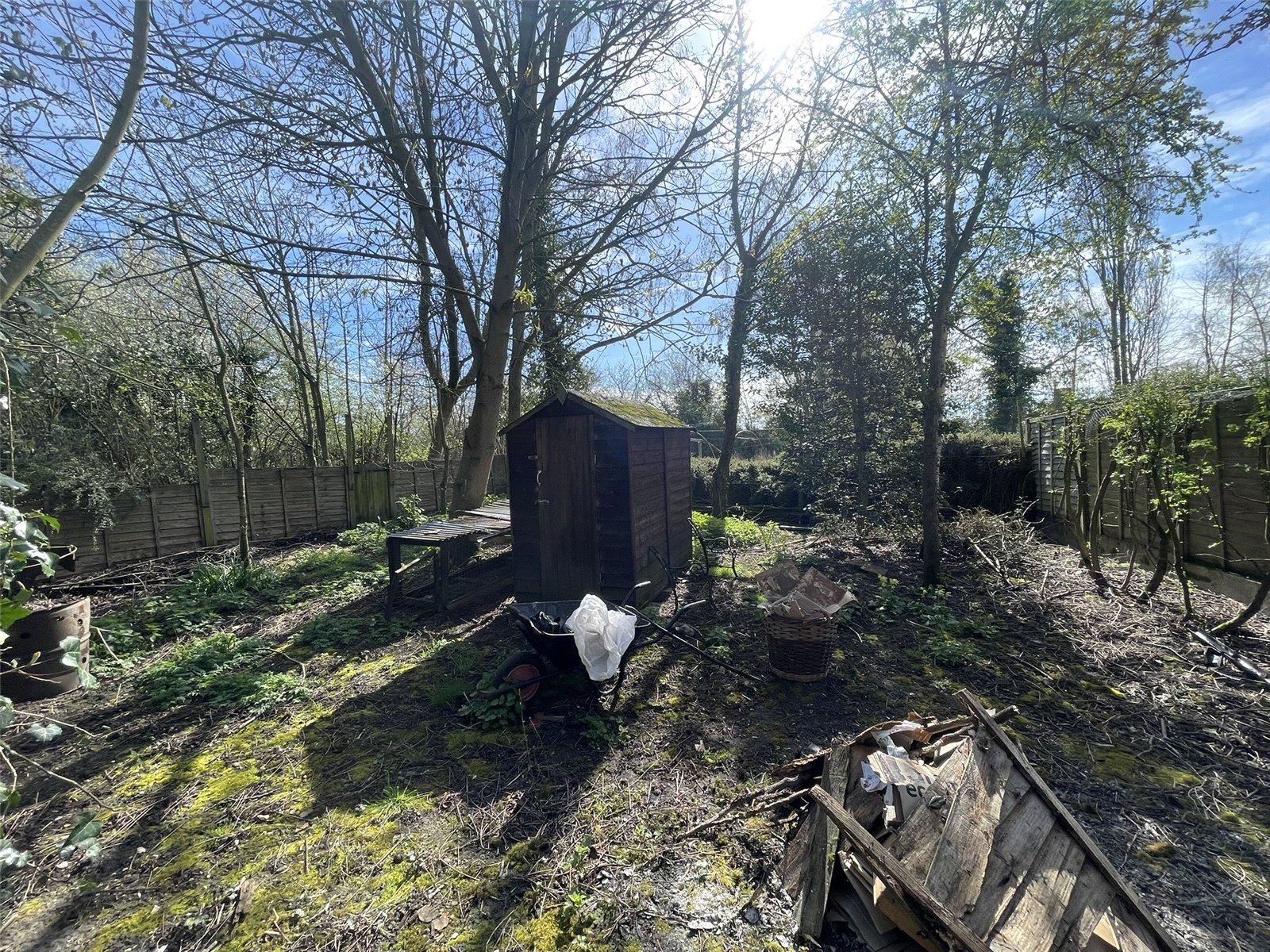 The elongated plot enables the building to sit towards the front end, close to the initial foot gate entrance, facing south. To the front left side a space allows for two sheds and oil storage tank and one can walk around the building across the rear. The bulk of the land extends past the Lodge and widens out. A section to the right hand end was acquired from the then owner of the adjacent The Cottage in 2004 and sits on a separate Land Registry Title. The grounds offer much potential for a keen gardener in order to bring them back in-hand but contain a variety of shrubs, plants and trees. A currently redundant but formerly elaborate and impressive pond system deserves resurrection. In addition to the two aforementioned sheds lies a larger workshop type space and which has been a recreational space in the past and measures 17'3 x 7'7 internally along with power and light connected. A smaller 'Sentry' shed sits close by.