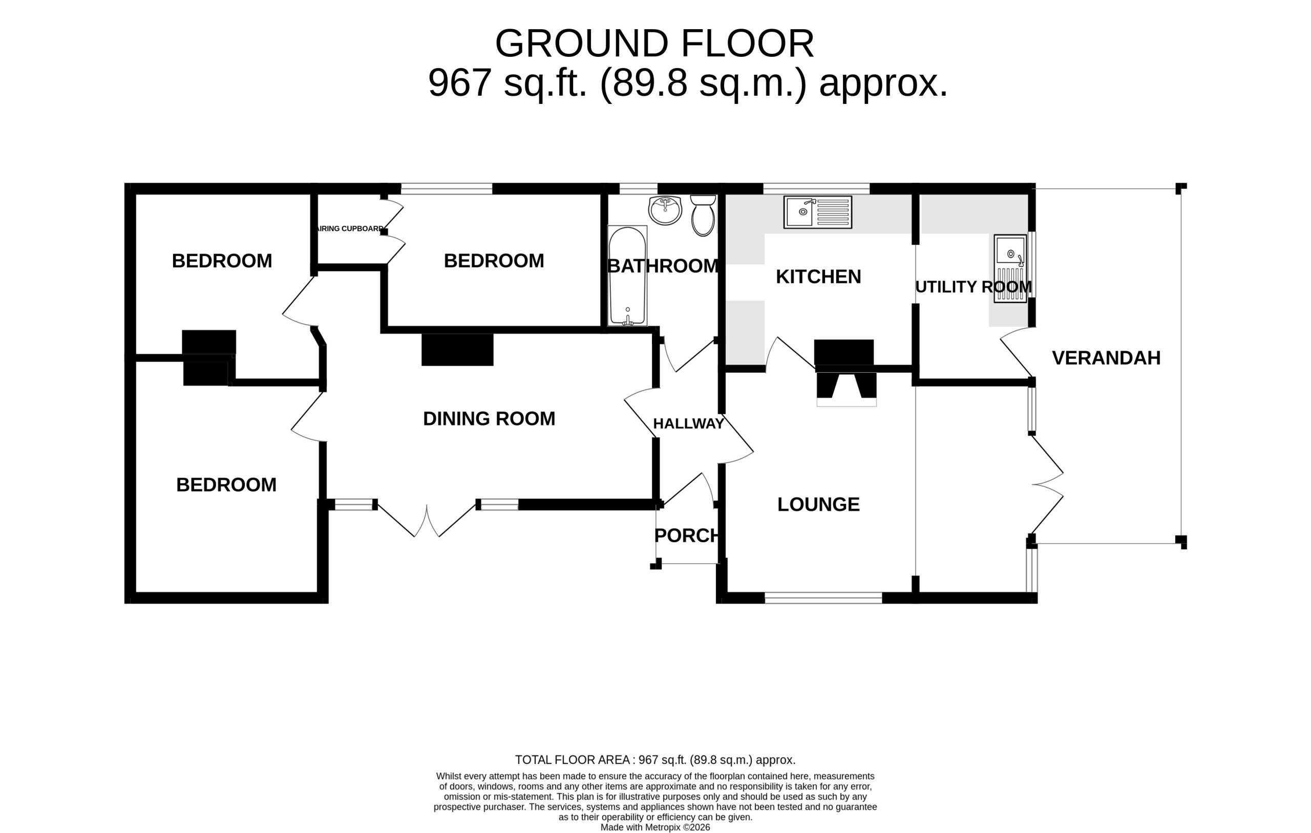 A very useful third bedroom option or perhaps study type use. Built-in airing cupboard with hot water tank and Grant oil fired boiler supplying domestic hot water and radiators. Single radiator with thermostatic valve. Window to the rear elevation.