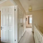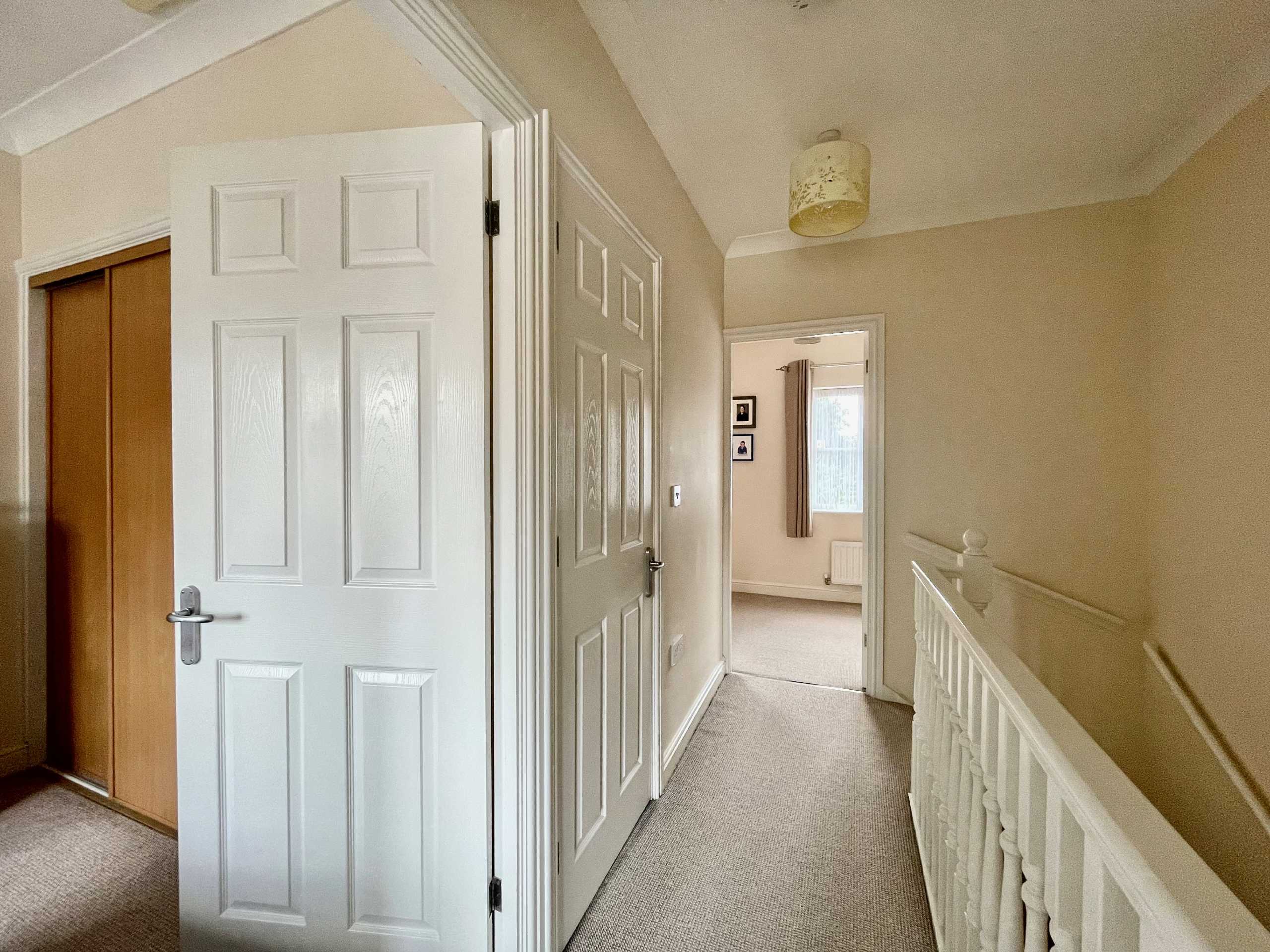 Built in airing cupboard housing hot water storage tank with immersion heater. Gallery balustrading in turned newel post and spindles combing well with the tall stairwell.