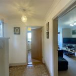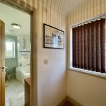 Nicely appointed with 110mm shower enclosure, pedestal wash basin and low level wc set off by a tiled floor and complementary tiling. Vertical railed heated towel rail. Window. Extractor fan.