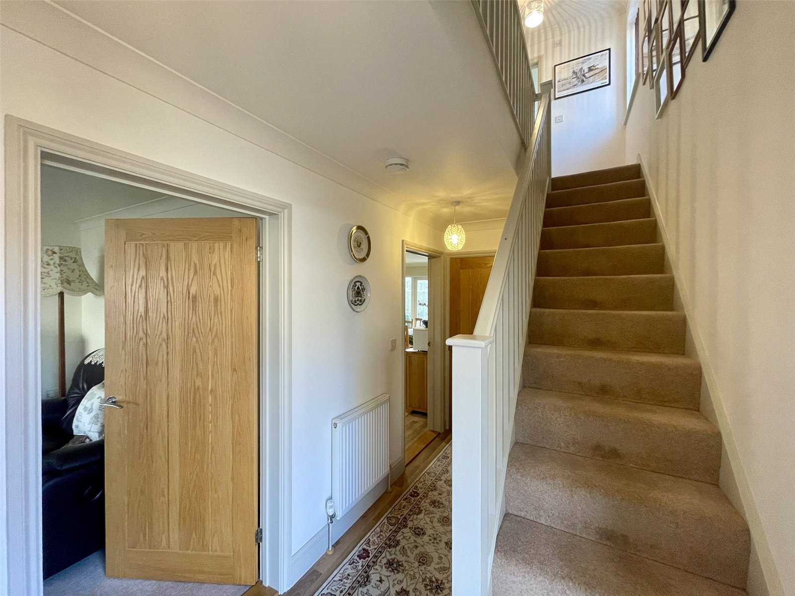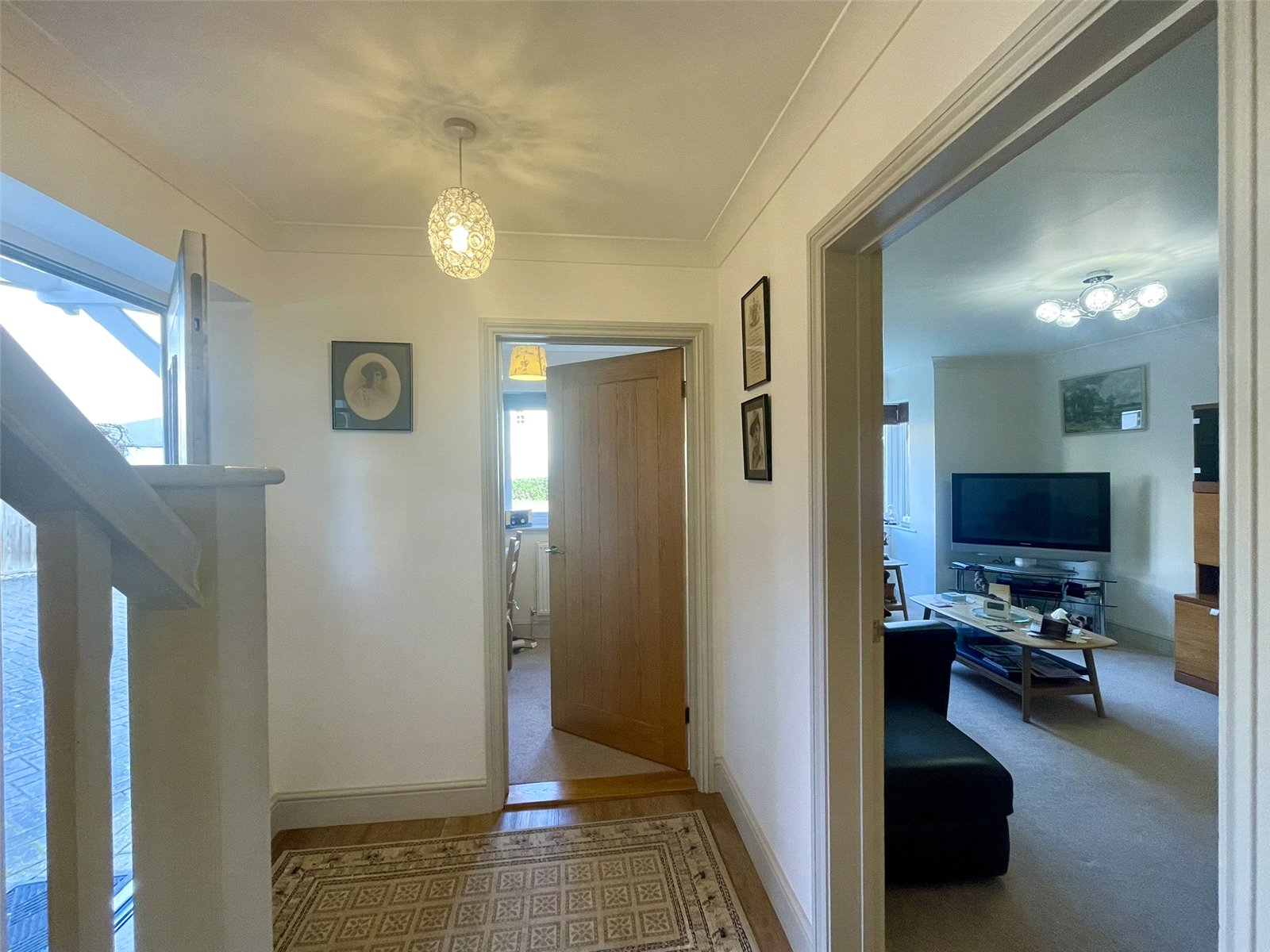 Approached via a part glazed outer door protected by a canopy porch, opening to a welcoming hallway laid with luxury vinyl tile woodgrain effect flooring which extends into the kitchen. Matching hardwood doors lead off via matching oak thresholds into each of the four immediate spaces. Beneath stairs the present owners commissioned bespoke oak doors to created cupboard storage. A straight staircase rise to the first floor.