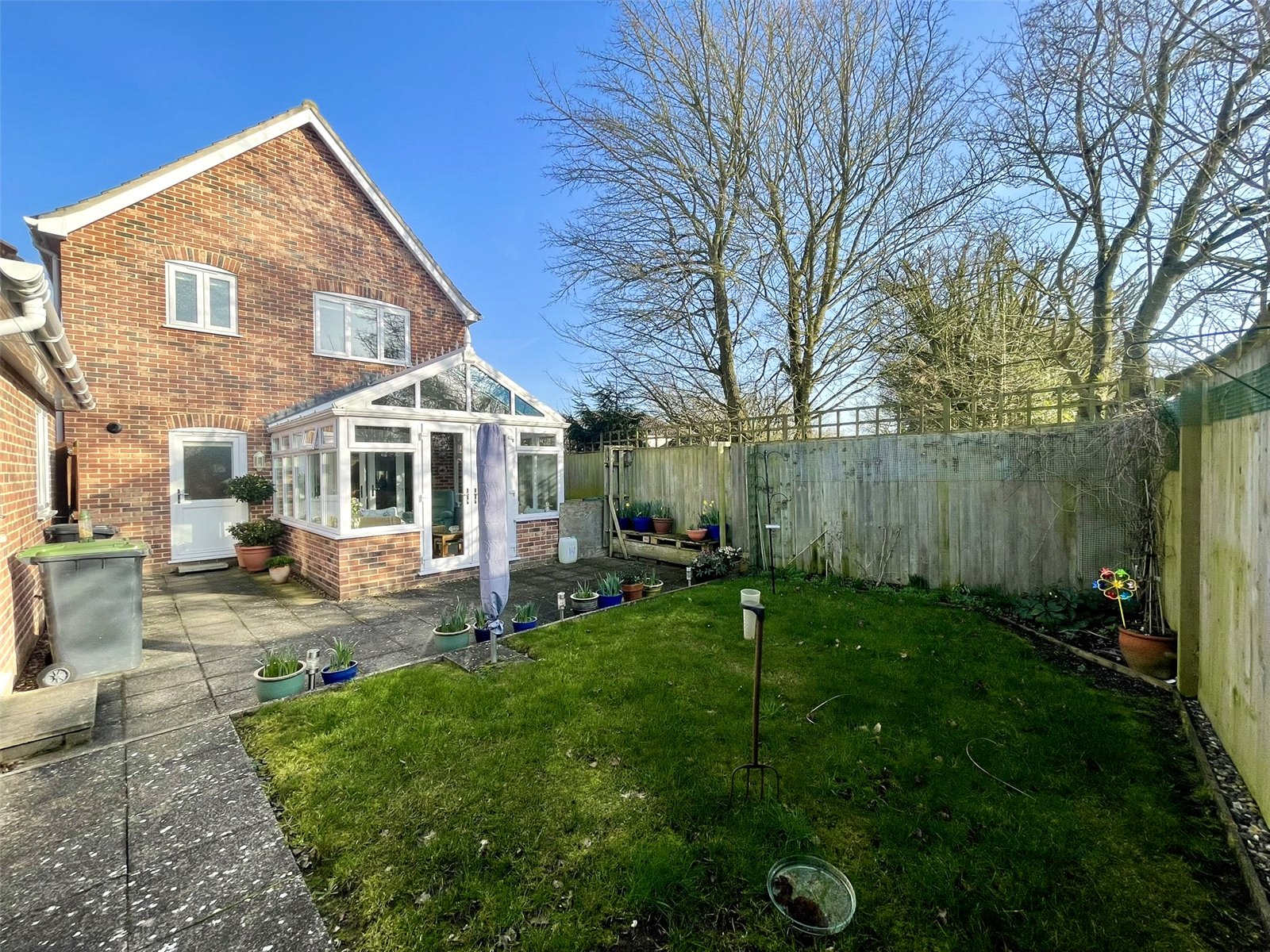7B with its two immediate neighbours, sits tucked away off the original Orchard Close paved road way both of which are classified as Private Roads. Consequently, these three properties, especially the houses, have no other passing traffic. The similarly brick paved roadway leads up to the house and extends alongside to the BRICK SINGLE GARAGE and parking area for two cars in tandem. The electric up and over door opens to an internal space measuring approximately 5.74m x 3.05m with window to the side, power and light along with a door to and from the garden. An area of lawn sets off the front of the house with the main garden approached from outside via a side gate also convenient for the door leading into the house via the utility room - ideal for dropping shopping in from the car etc. The rear garden benefits from the conservatory and has an area of lawn, planted borders and a small vegetable patch alongside the GARDEN SHED. Outside tap. Lanterns. Paved and gravel pathways.