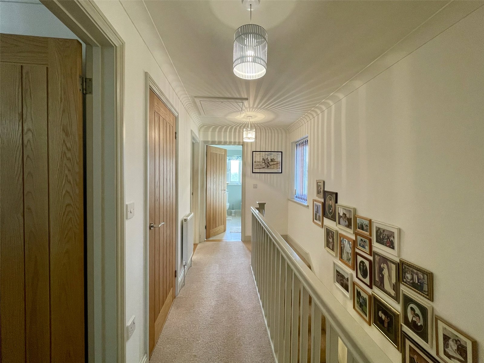 The straight staircase rises to a galleried landing and stairwell with window to the side elevation. Matching design touches continue upstairs with the excellent doors leading off to each of the three bedrooms and bathroom plus shelved airing cupboard. Access to loft space with drop down hatch and ladder. Single radiator with thermostatic valve.