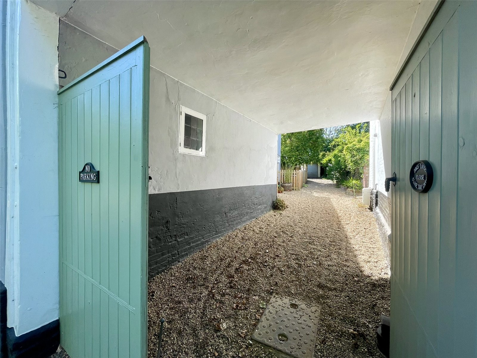 No.3 is extremely fortunate in owning the gated vehicular access from The Rookery leading to one of two garages set to the rear, with the left hand one belonging. The pea shingled driveway, owned by No,3 extends from the gates beneath part of No.2 The Rookery (Flying Freehold) and provides access to the garden and garage.