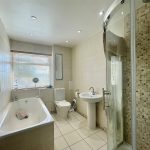 Of good size and fitted with a suite comprising quadrant shower enclosure with Aqualisa shower installed; panelled bath; low level wc and pedestal wash basin. Walls are tiled along with each of the four walls and ceiling spots incorporated above. A recess houses a mirror fronted medicine cabinet. PVCu double glazed window to the rear. Vertical railed radiator in a stainless steel finish.