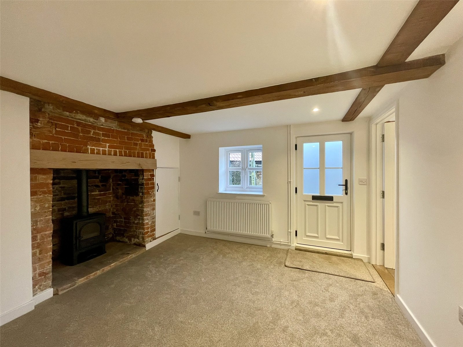 Whilst there is an entrance door within the front elevation, the main entrance is via this characterful Storm Porch shielding a cottage style door with glazed pane. It opens to a welcoming Hall where stairs lead off to one side and doors lead through to the ground floor spaces. A handy recess could take a coat stand.