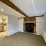 An almost square room with inglenook fireplace housig a woodburning stove set on a brick hearth and with a cupboard to one side. PVCu double glazed window to the front elevation along with a matching outer entrance door. Useful understairs cupboard ideal for such things as ironing boards, vacuums etc. A door leads to...