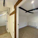 Stairs, having risen from the ground floor entrance hall lead up to a cottage landing with doors leading off to each of the two first floor bedrooms and bathroom. Expsoed oak timbers.