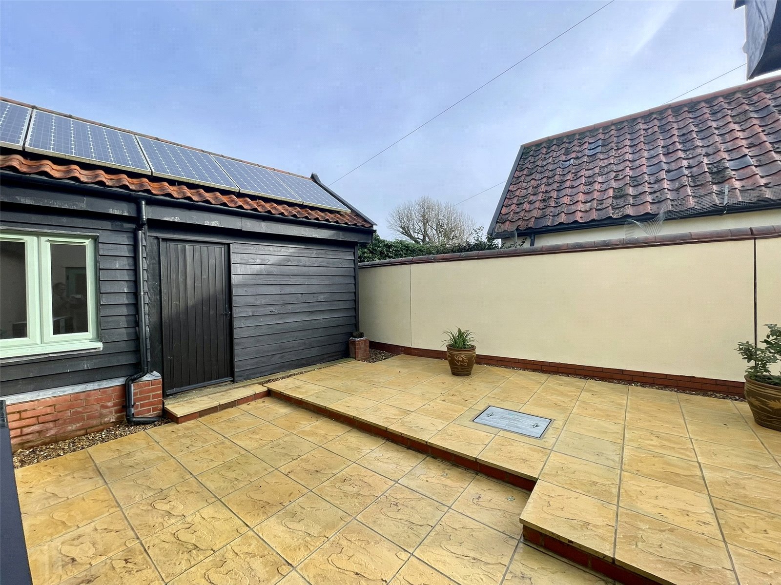 Access from the road is via the gravel drift running between properties which serves three properties behind plus provides access to the GARAGE of Ye Olde Smithy. An additional OFF ROAD PARKING SPACE can be found to the right hand side of the cottage, at the front. The footprint of the buildings create a sheltered yet sunny paved courtyard newly landscaped and presented within a walled boundary. At it's widest/deepest points the courtyard is approximatly 6m x 9m. The GARAGE building measures internally approximately 3.27m deep and 3.13m wide with a single wide swinging door. An internal door leads to the courtyard. The roof is adorned with PHOTOVOLTAIC panels currently contracted to Eon Next with a contract of 74.37p/Kwh which is a significant rate. A Samsung Air Source Heat Pump serves domestic hot water and radiators throughout. Outside lights.