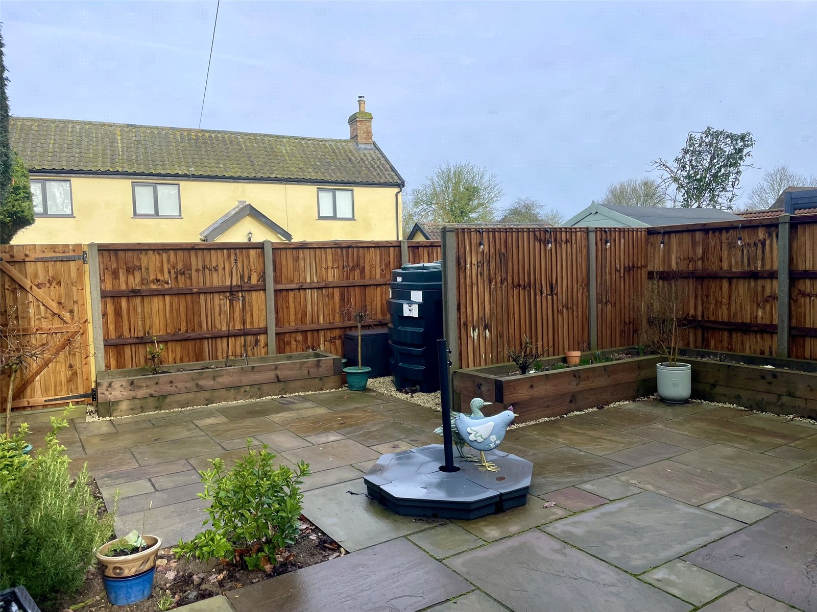 The house is set back from the road behind a neat well established hedge with post and rail outer fencing. An Indian sandstone pathway leads to the front entrance door and canopy porch and continues around to the rear via a side gate. Boundary fencing alongside and enclosing the rear space is only recently installed and replaces the original boundary finishes. Likewise the smart sandstone paving culminates in a paved garden space decorated with raised and ground level beds around the outside. A Garden Shed will remain and sits nicely tucked out of the way alongside the house. A rear gate leads to two side by side PARKING SPACES laid with a durable brick paved surface and approached via the shared Wheelwright Close drive for which the users each contribute to its maintenance should it be required. Outside power points. Oil storage tank. Outside lights. Outside tap.
